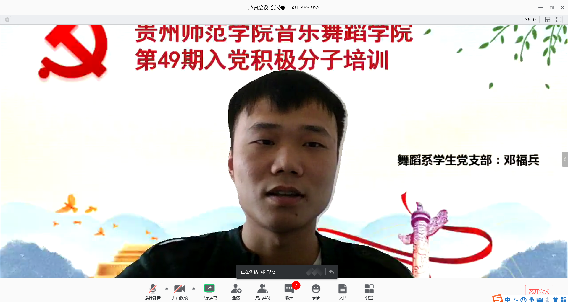 4月10日中午,77779193永利官网集团在线举行了第49期入党积极分子的培训,由学生党员邓福兵同志担任主讲人,开展“疫情下的思想觉悟”专题讲座。