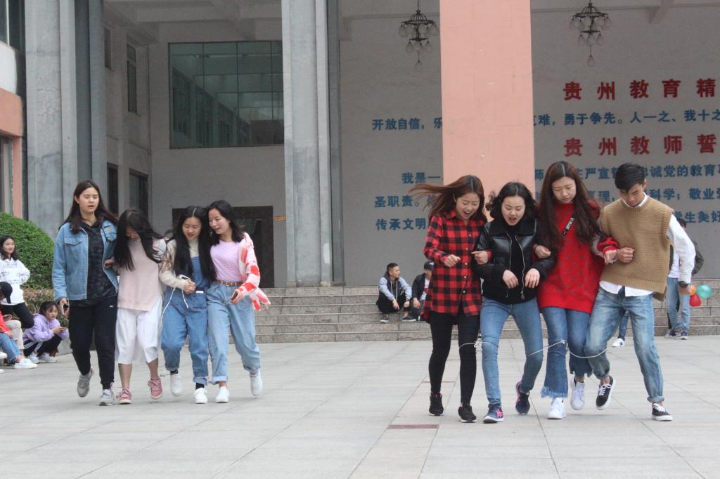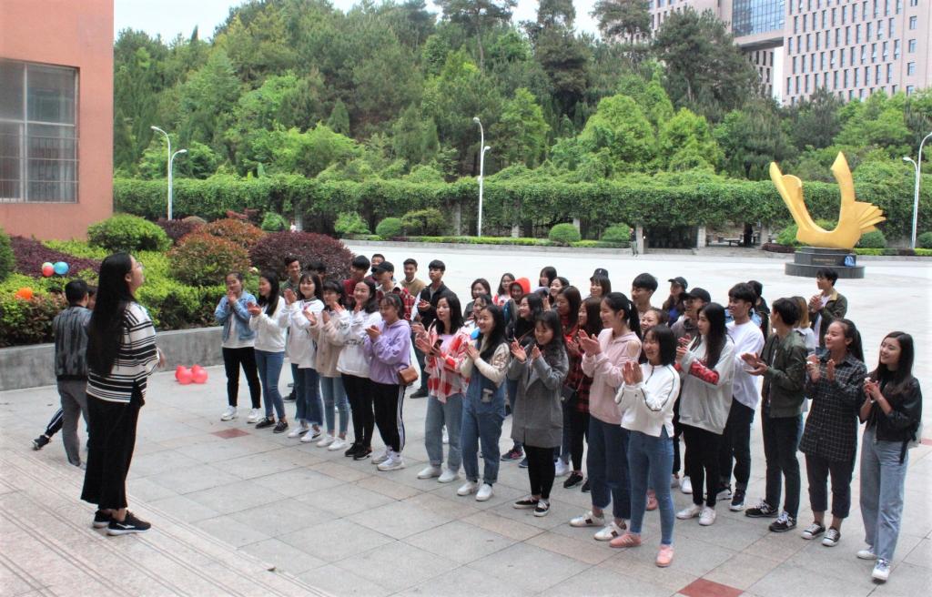 4月14日,艺术学院第45期入党积极分子培训班全体学员在凤凰广场展开素质拓展活动。
