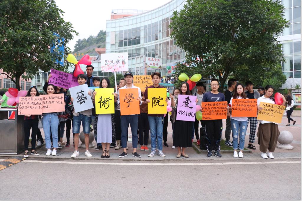 为送别即将离校的20113级毕业生,学生党支部、艺术学院团委组织学生党员、团学干部、入党积极分子集结在凤凰广场开展欢送毕业生离校活动。艺术学院党委书记付巧、党委副书记朱晨刚、办公室主任宋建强、专职辅导员谭娇艳、杨钢到场共同为毕业生话别。