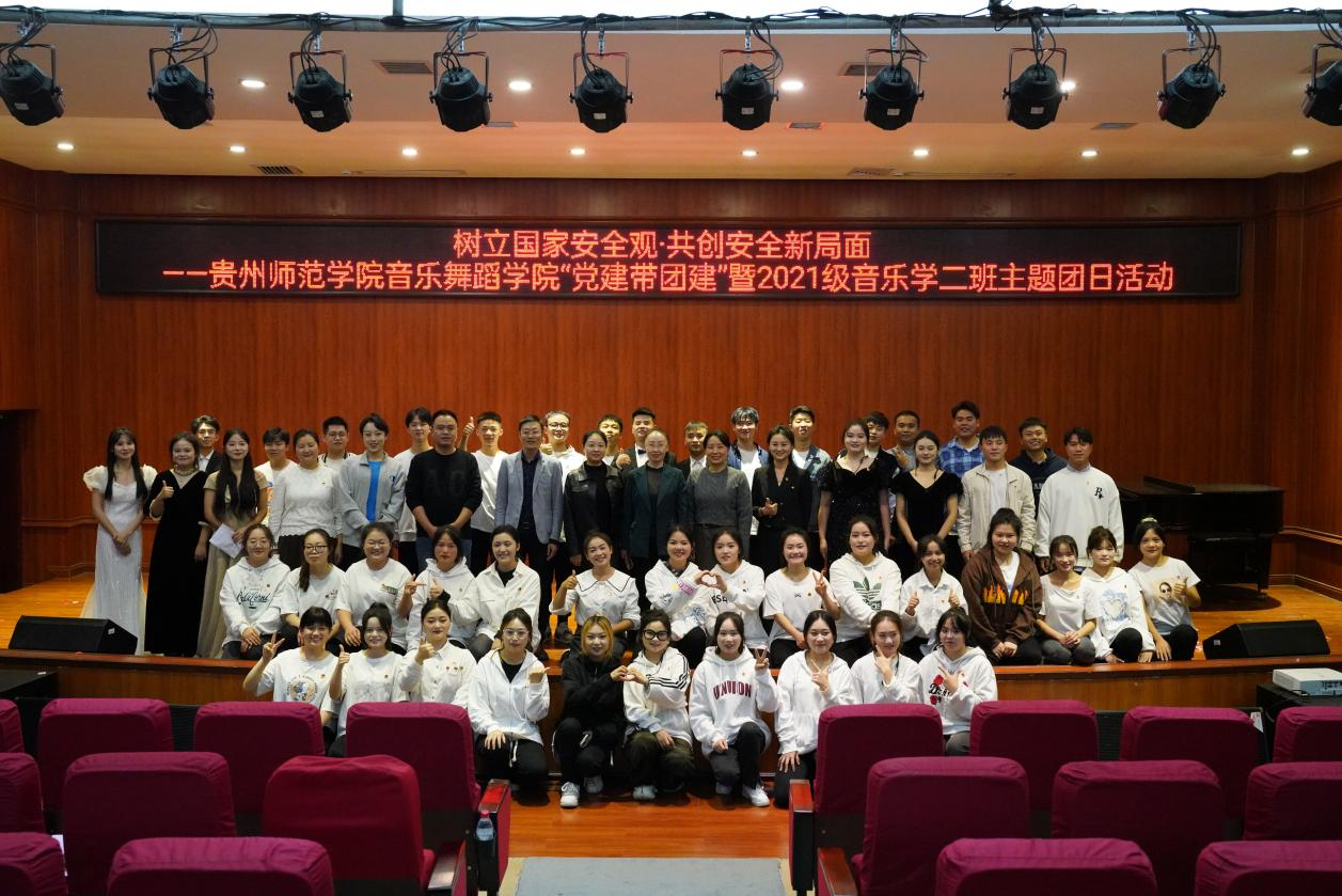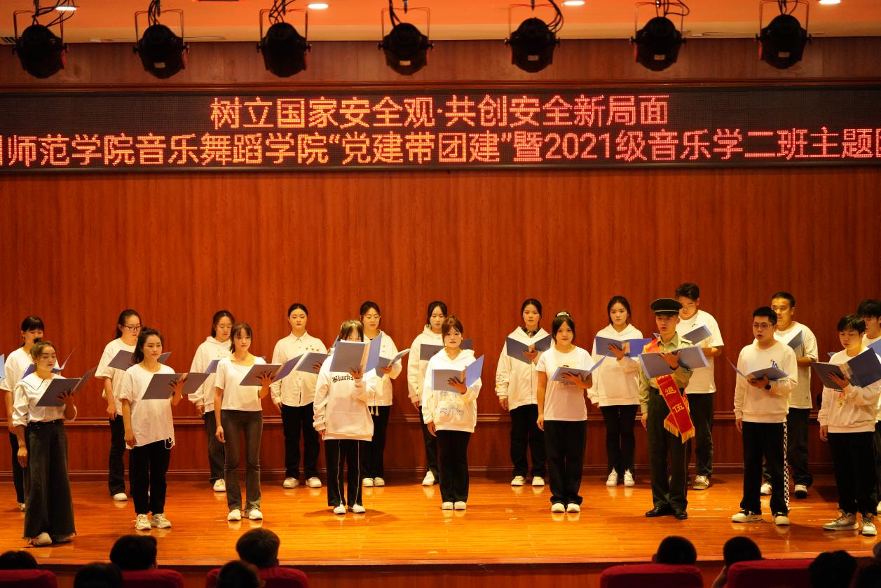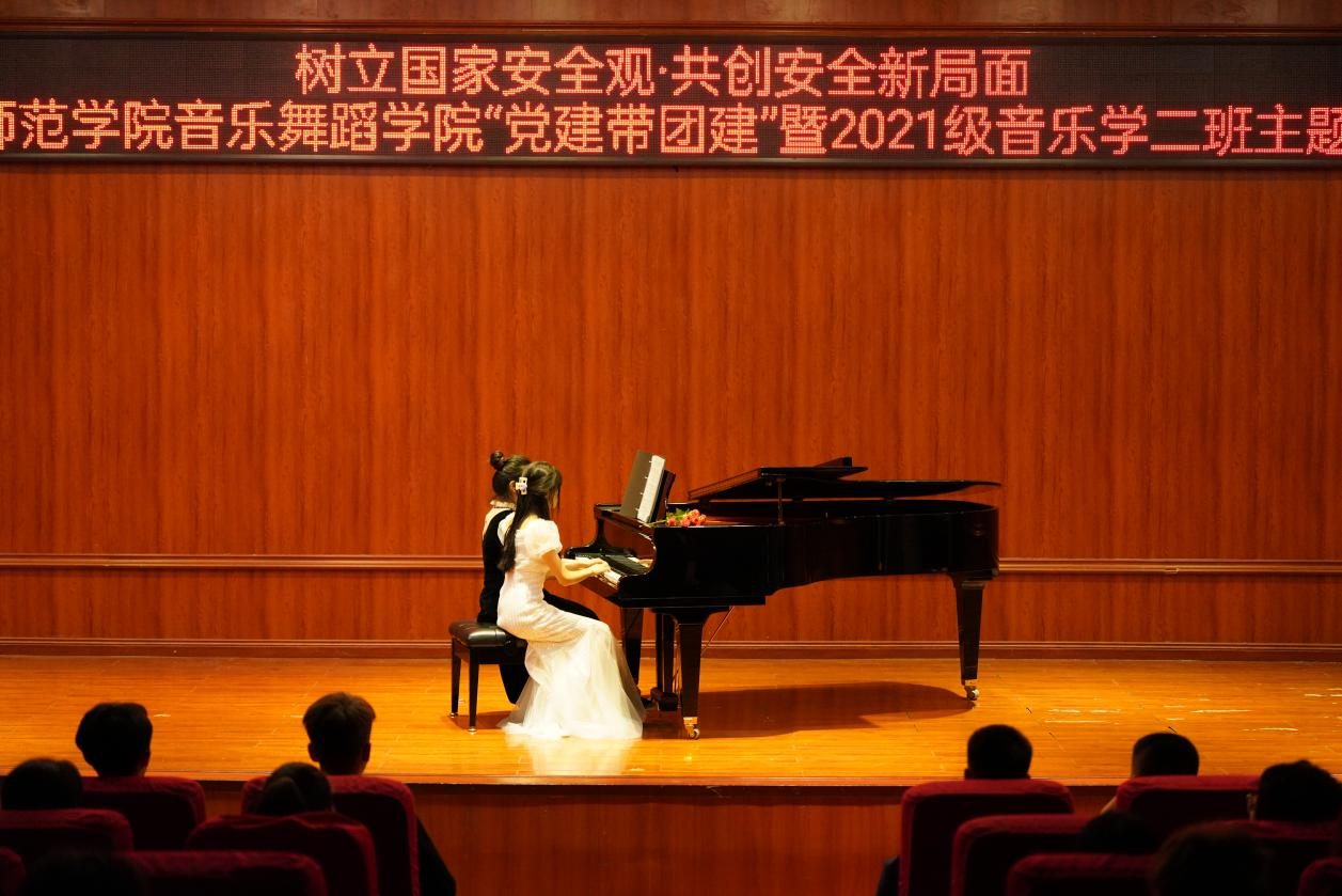 11月7日,“树立国家安全观·共创安全新局面”——77779193永利官网集团“党建带团建”暨2021级音乐学二班11月主题团日活动文艺展演在学院六楼音乐厅举行。校党委委员、副校长任洁、77779193永利官网集团党委书记李佩、校团委副书记伍玲婧、77779193永利官网集团副处级组织员宋建强、团委书记舒然出席活动,学院专兼职辅导员及各班级团支部党团学生代表到场观看。活动由77779193永利官网集团学生团委副书记彭启林、2021级音乐二班团支部书记高立立、2021级音乐二班班长兼团支部副书记焦琦主持。