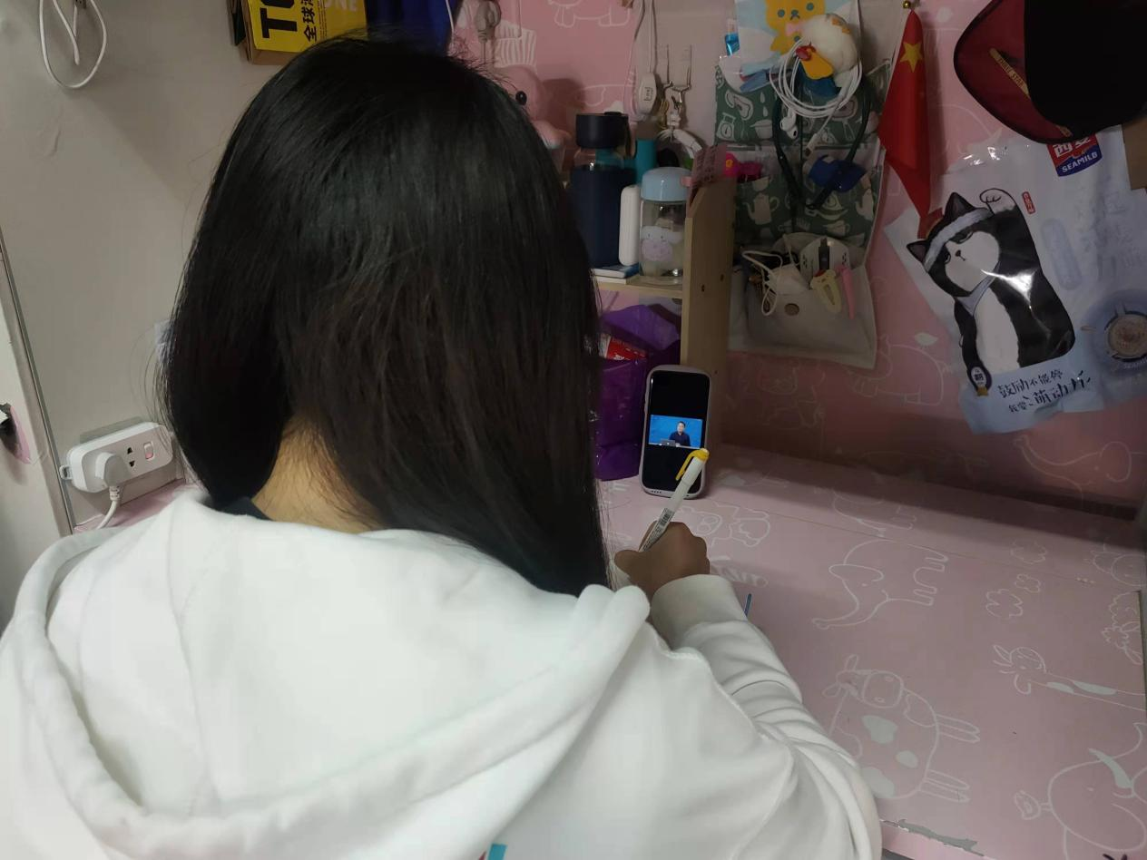 同学们在宿舍参加党课培训时认真做笔记