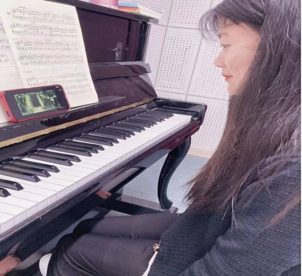 同学们在刻苦练琴的同时也积极参加网上党课培训