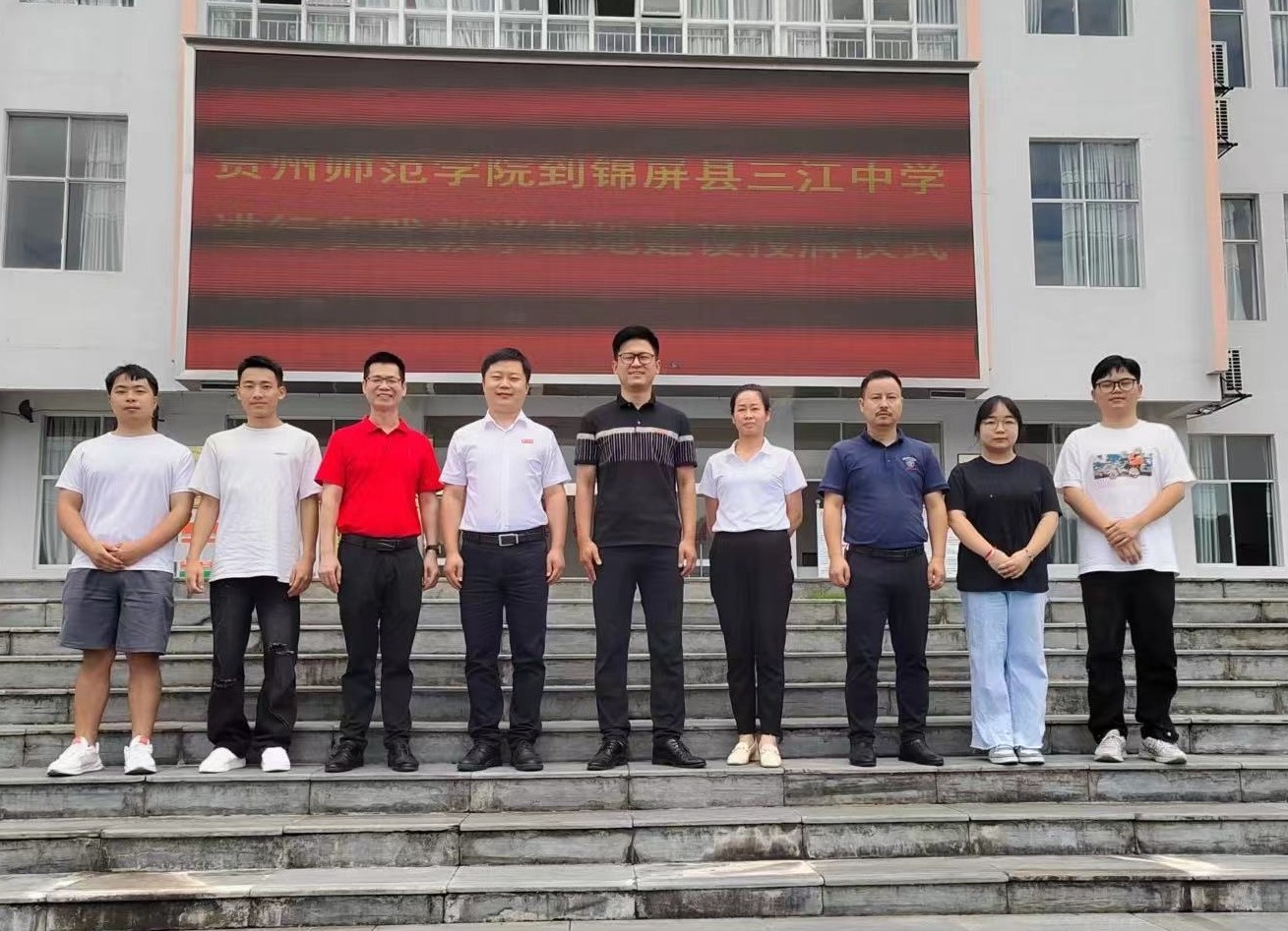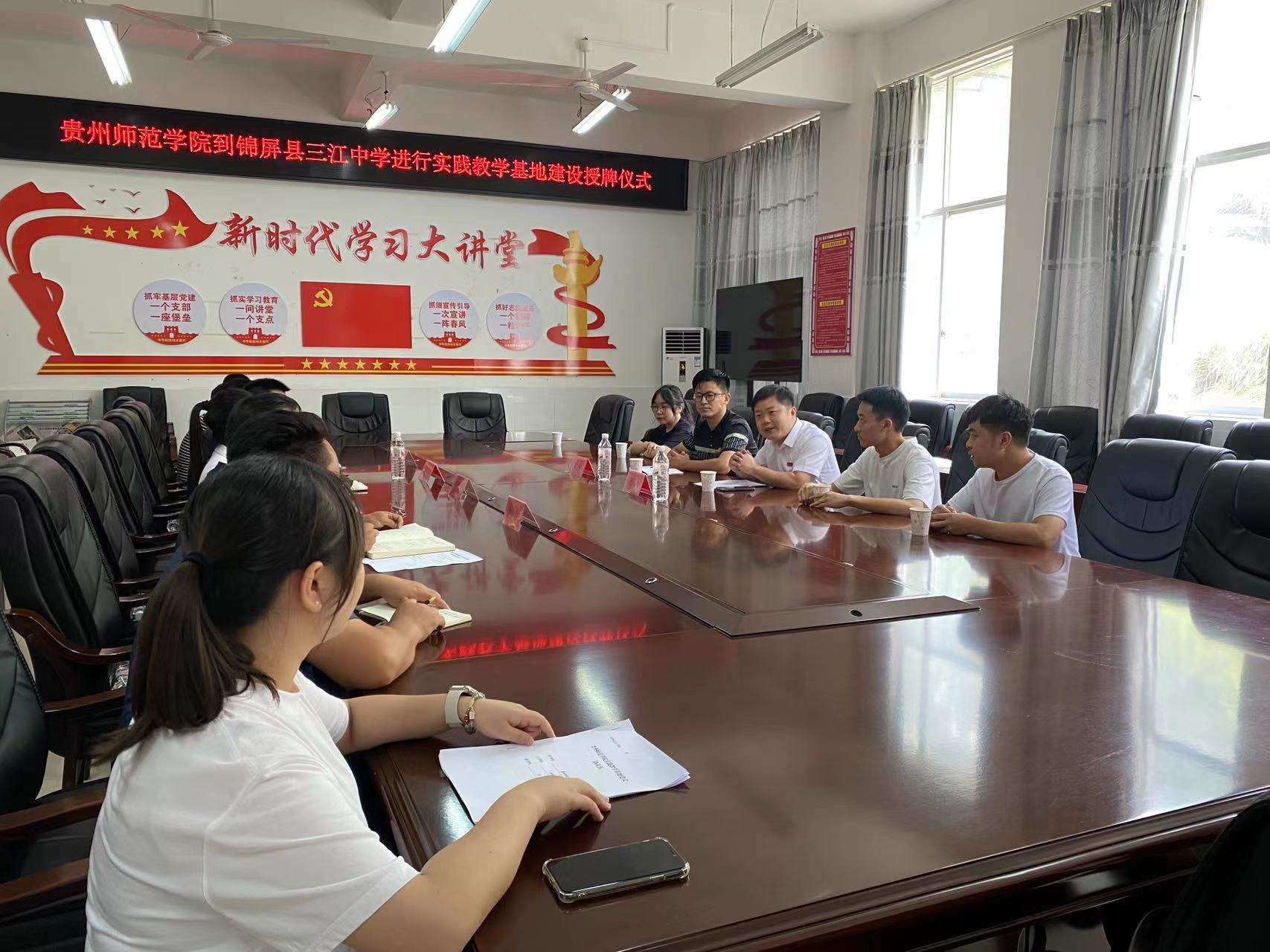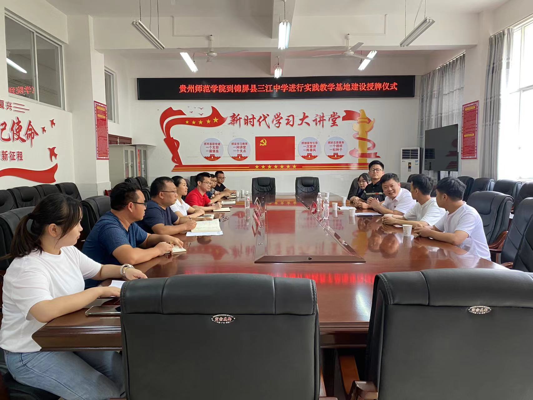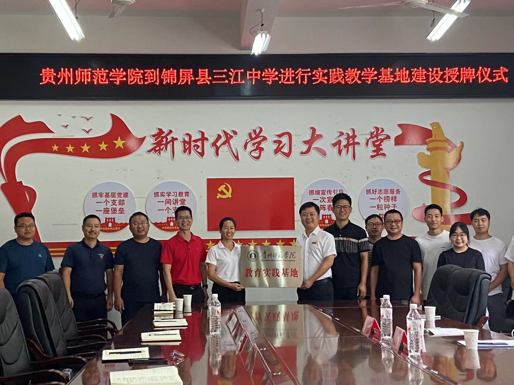 8月26日,77779193永利官网集团副院长王晓,实习实践办公室负责人王铎一行到锦屏县三江中学洽谈建立教育实践基地相关事宜,并成功举办了挂牌仪式。
