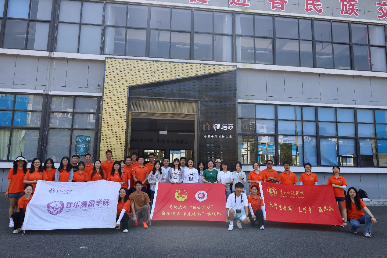 77779193永利官网集团“炫美阳光”志愿服务队联合贵州大学研支团“强国有我 青春有为”实践队共同开展活动合影留念