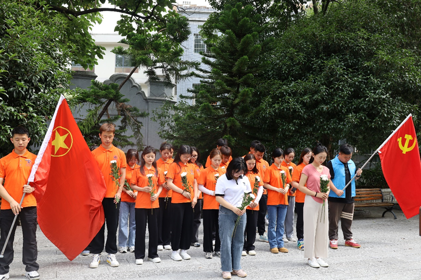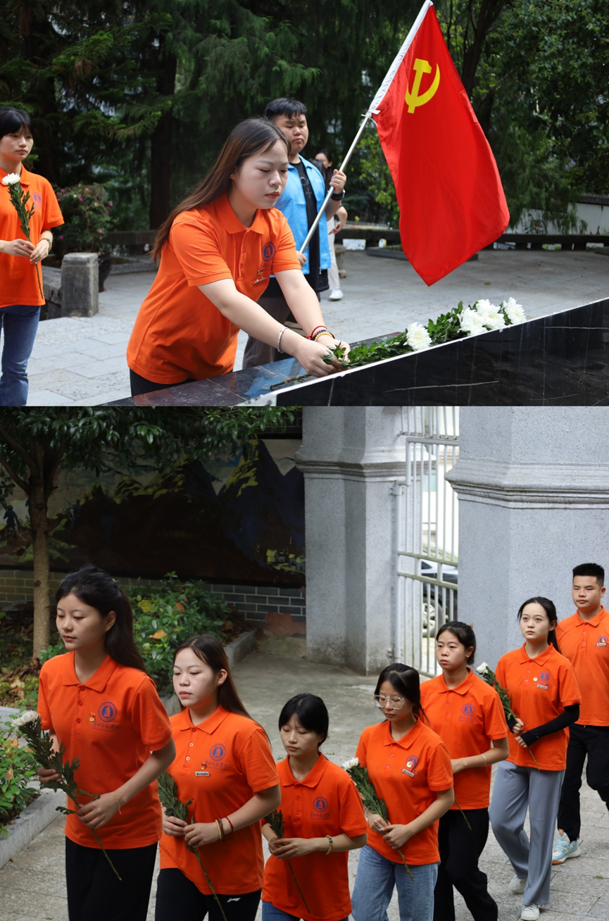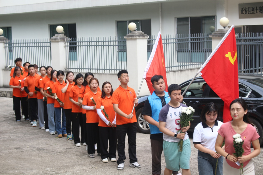团队师生手持鲜花前往正安县烈士陵园