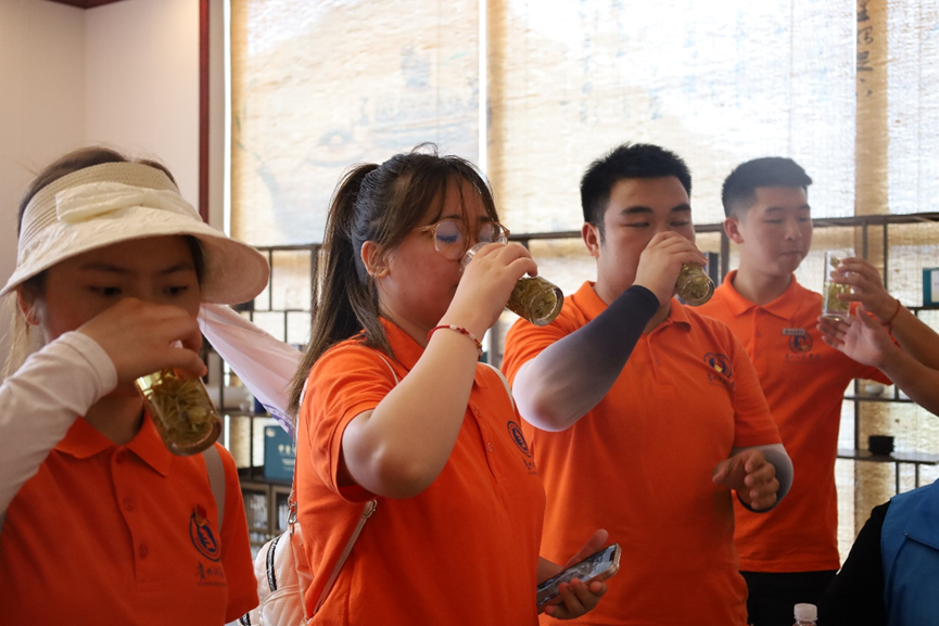 随后,团队来到国家地理标志保护示范区——水口寺白茶基地,就正安白茶生长特点、独特品质、茶产业发展情况进行实地考察。“炫美阳光”们通过唱采茶歌、跳采茶舞、吟采茶诗、走茶山路、观茶山景、感茶乡美,实地感知土坪镇胜利组积极践行“绿水青山就是金山银山”理念,通过种植正安白茶,改变传统农业,带领村民脱贫致富奔小康的励志图景。