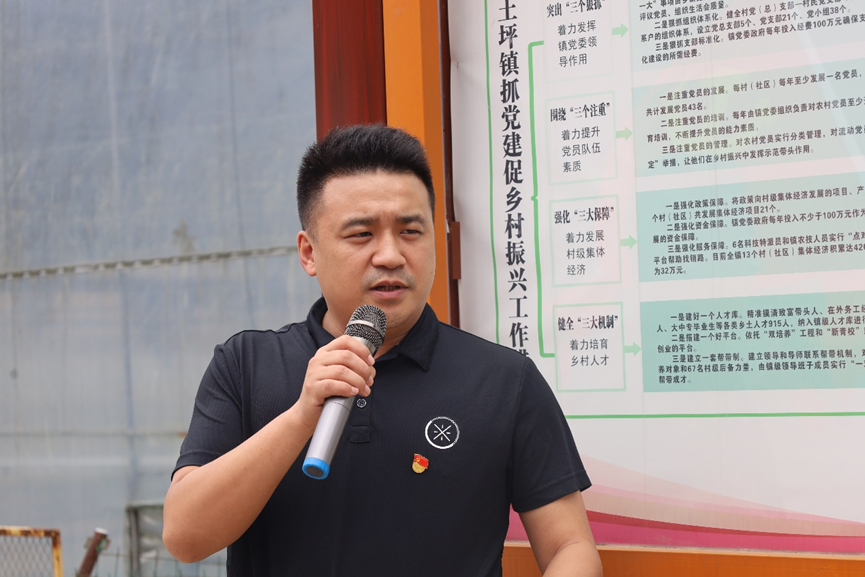 土坪镇党总支组织委员张艺波介绍明星社区整体概况、集体经济发展模式、“茶游一体化”创新模式等