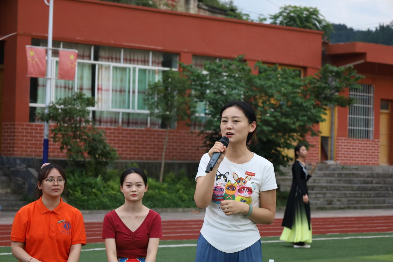 志愿者彭启林与谢坝乡中心小学同学们合唱《孤勇者》