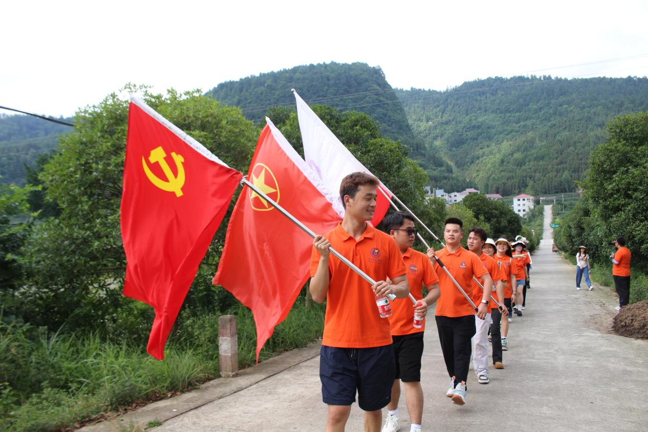 团队行走在谢坝仡佬族苗族乡乡村振兴大道上