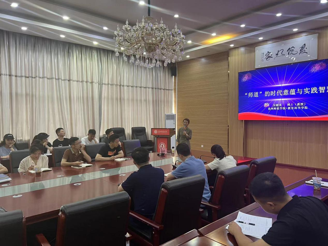 宣讲会上,学院院长马关辉首先介绍了吴晓英老师的个人简历和先进事迹,并对吴老师前来宣讲表示热烈欢迎。吴晓英以唐代韩愈《师说》中“师者,所以传道受业解惑也”引出宣讲主题,从“师道”的内涵诠释、时代意蕴、实践智慧三个方面展开宣讲。同时,她以扎实的理论功底详细阐述了“师道”的内涵、教师的时代重任、我国高等教育中的“人才培养”三问、“四有”好老师的文化内涵、教师职业能力的四大维度、教师数字素养等,宣讲内容丰富,对我院下一步开展师德师风建设有很大启发。