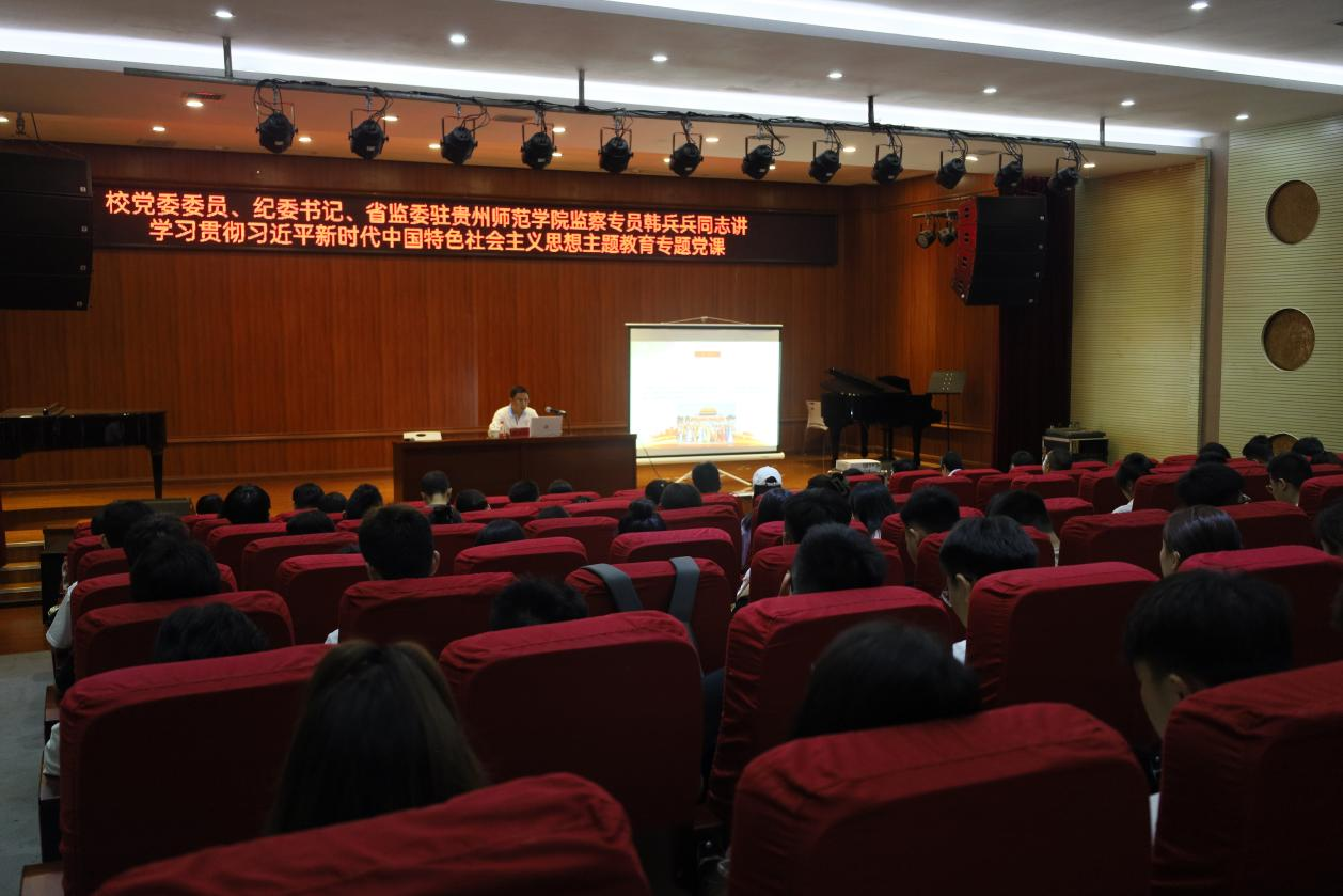 韩兵兵以“学思践悟党的创新理论,勇于自我革命敢于斗争,在新征程上续写新篇章”为主题,从学习贯彻习近平新时代中国特色社会主义思想收获体会,提升政治能力、思维能力、实践能力的理解和体会,运用党的创新理论推进师院内涵式发展,强化斗争本领、坚持严管厚爱、勇于激励担当等四个方面进行党课讲解,紧密结合学习贯彻习近平新时代中国特色社会主义思想主题教育、纪检监察工作和个人开展调查研究相关成果,突出党课针对性和指导性,党课质量高、师生反响好。