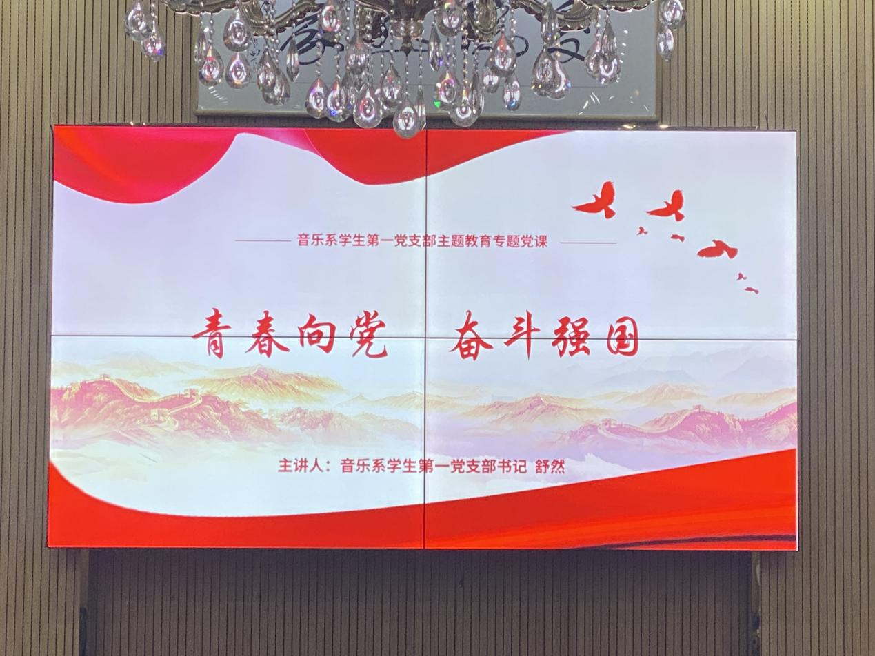 学习贯彻习近平新时代中国特色社会主义思想主题教育正在全党深入开展,为提高支部师生党员的党性修养,落实主题教育工作任务,6月9日13时,77779193永利官网集团音乐系学生第一党支部书记舒然在六楼会议室为支部全体师生党员开展了主题为《青春向党奋斗强国》的专题党课。