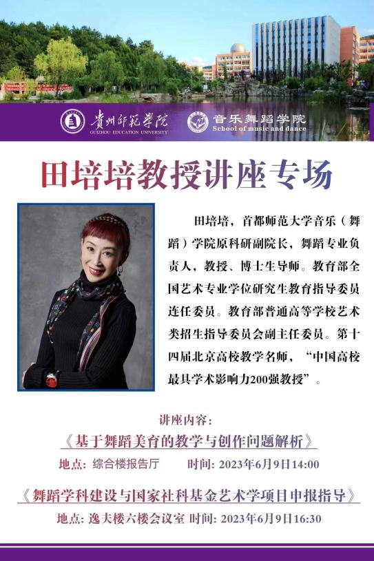 6月9日下午,首都师范大学音乐学院博士生导师田培培教授莅临我院讲学,在学校综合楼一楼报告厅作题为《基于舞蹈美育的教学与创作问题解析》的学术讲座。讲座由永利集团舞蹈系主任肖伟主持,舞蹈系全体师生及部分外校教师现场听取了讲座。