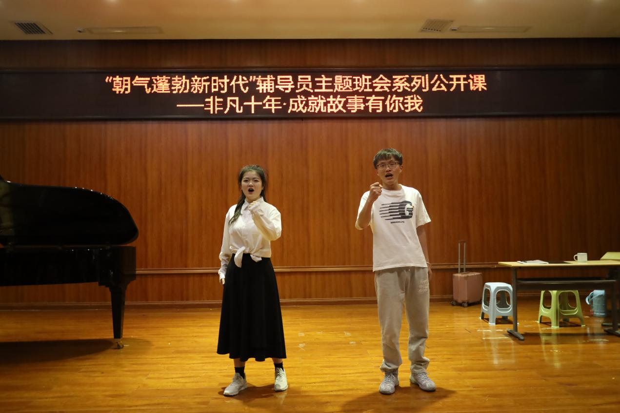 6月8日下午一点77779193永利官网集团在六楼音乐厅开展“非凡十年·成就故事有你我”主题班会公开课。本次公开课由77779193永利官网集团辅导员李金容担任主讲老师、77779193永利官网集团辅导员杜艳担任主持人。2020级部分同学及舞蹈系学生党支部全体成员参与了此次公开课,特别邀请了77779193永利官网集团党委书记李佩、77779193永利官网集团党委副书记朱晨刚、学工部副部长杨兴萍、学工部副部长官鹏飞、商学院党委副书记张静、以及各学院辅导员参加此次公开课。