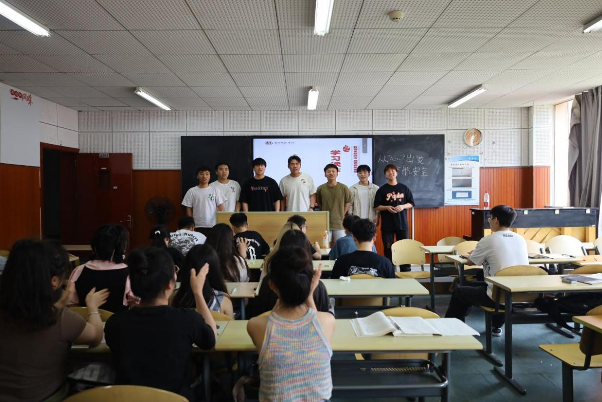 活动开始,团支部书记杨宇航以“五四青年优秀事迹”为题展开讲述,并让同学们展开讨论,大家纷纷分享了自己对“五四运动”精神的感想。后续活动中,同学们一同展示了诗朗诵《长征组歌》选曲——《黄河之水天上来》、歌曲《有我》等节目,活动在温暖活泼的氛围中圆满结束。