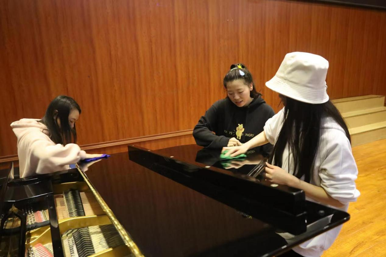 在劳动教育活动中,我院同学自觉清理了乐器管理室、琴房、舞蹈教室、归类了舞蹈器具和舞蹈演出服装,也对学院公共场所进行全面打扫,做到地面干净无纸屑,无杂物,无卫生死角。此外同学们也将学院的绿植进行修剪、护养和灌溉。