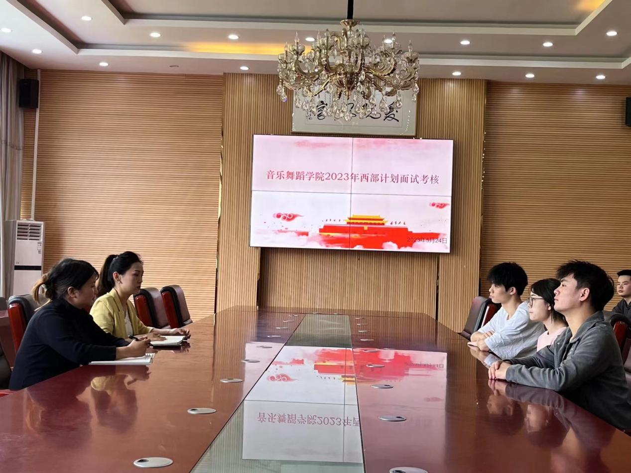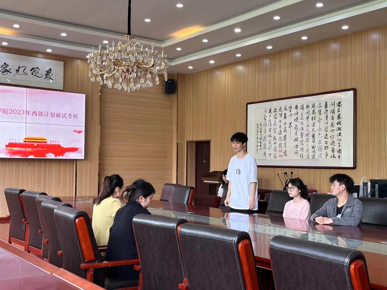 2023年5月24日中午,77779193永利官网集团团委在逸夫楼六楼会议室开展了2023年西部计划志愿者面试考核会。团委书记舒然、团学工作老师张彩艳担任评委,考核会由团委学生副书记彭启林主持。