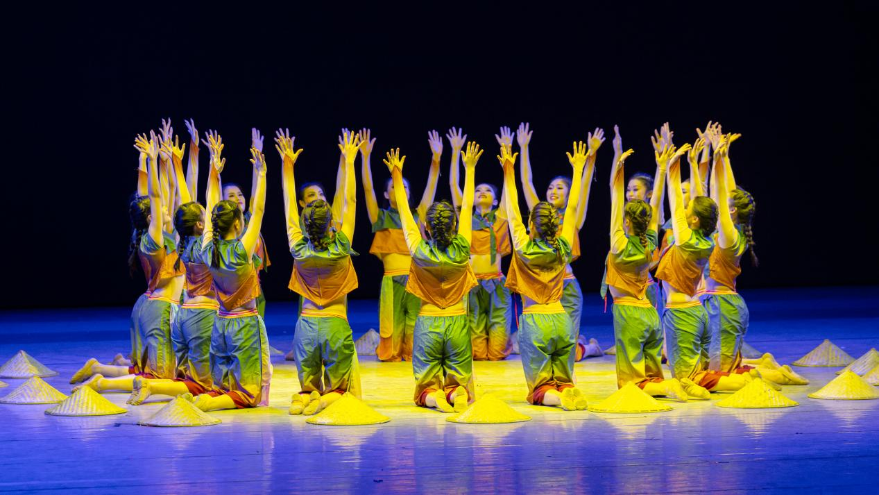 第三篇章为“满红•溢彩”,本章节节目精彩纷呈,集中展示了学院近期创作的优秀舞蹈剧目,包含《挽歌》《茉莉芬芳》《丹寨凤鸣》《稻浪》《田间斗笠》《阳光下的麦盖提》等,精彩的演出使得观众的掌声久久未熄。值得一提的是,由舞蹈系教师编舞并指导排练、贵阳市小学生舞蹈团的孩子们生动演绎的《稻浪》为本次演出增添了难忘的快乐童趣,该节目也是永利集团“大手牵小手”舞蹈美育进校园校级教学成果奖培育阶段性成果。