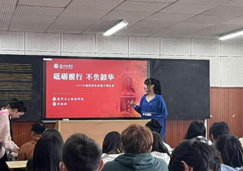 课程中,李雅婷首先和大家分享了自己大学三年来的主要成绩,她强调,团员是共产党员的后备军,学生干部是学生的服务者,要具备优秀共青团员所具有的优秀品质,激发和引导广大青年同学砥砺前行。最后通过“疫情防控志愿者”“暑期三下乡社会实践”等活动作为案例鼓励全体同学要砥砺前行,不负韶华。