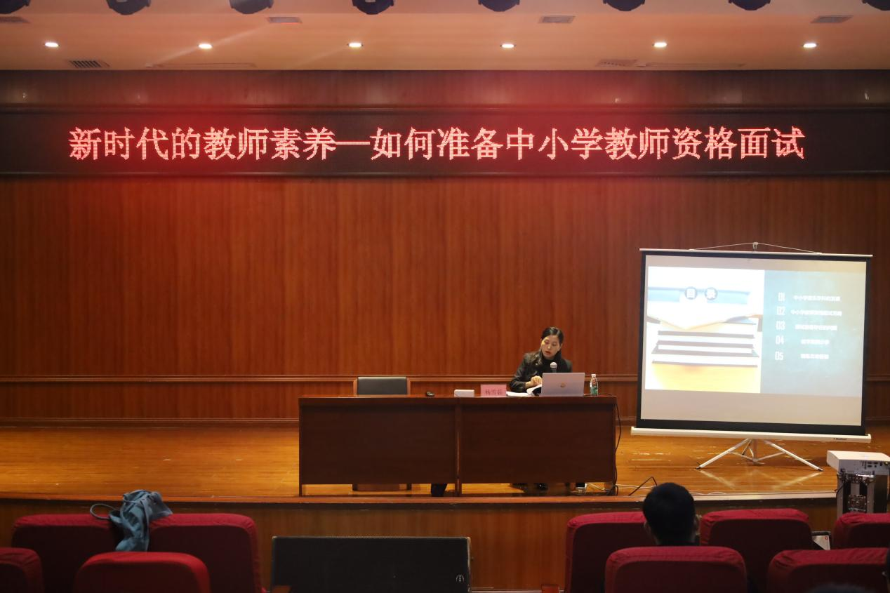 本次讲座杨雪茹老师围绕音乐教师资格证面试技巧展开,为学生们进行了面试的分析和详细讲解。通过本次讲座,学生们对面试的环节和面试要求有了深入的了解,为中小学教师资格面试成功打下了坚实基础。