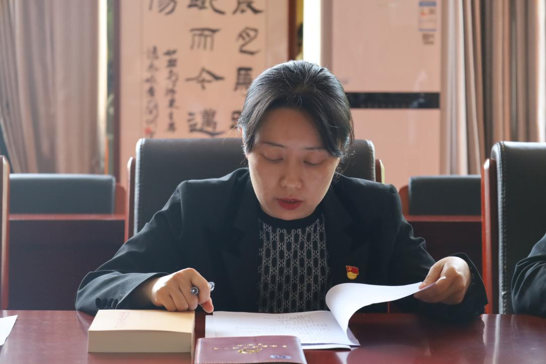 会上,李佩领学《习近平著作选读》(第一卷)14-18页《高举中国特色社会主义伟大旗帜,为全面建设社会主义现代化国家而团结奋斗》中节选内容;马关辉领学《习近平新时代中国特色社会主义思想学习纲要(2023 年版)》216-219页“办好人民满意的教育”部分。