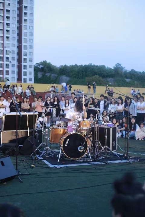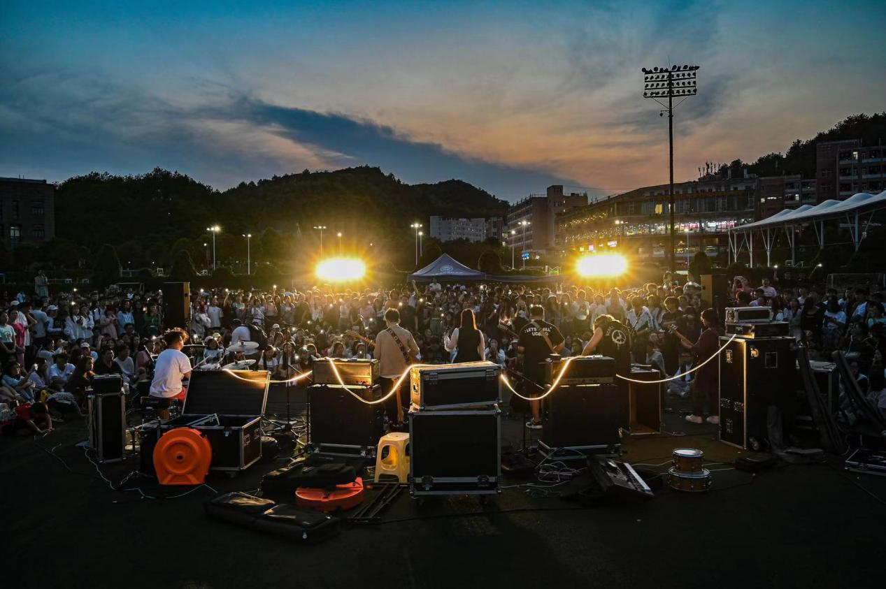 当晚,鸠鸠JIOJIO、郭屿施、森巷115三支乐队轮番登场,为观众带来了《山海》《夜空中最亮的星》等不同曲风的音乐作品,其中也包含原创作品《昨夜的星辰》《一首快乐的歌》等。演出过程中,乐队或热烈狂放,或低吟浅唱,诠释着当代青年对自我、对生活、对爱以及梦想的理解和态度。三支乐队以天为幕布、以草坪为舞台,将激越、鲜活、多样的摇滚魅力尽情挥洒在美丽的校园中,用极富张力的音乐表现力和超强的现场感染力,让现场数千名学生为之动容与呐喊,极大丰富了同学们的课余生活。