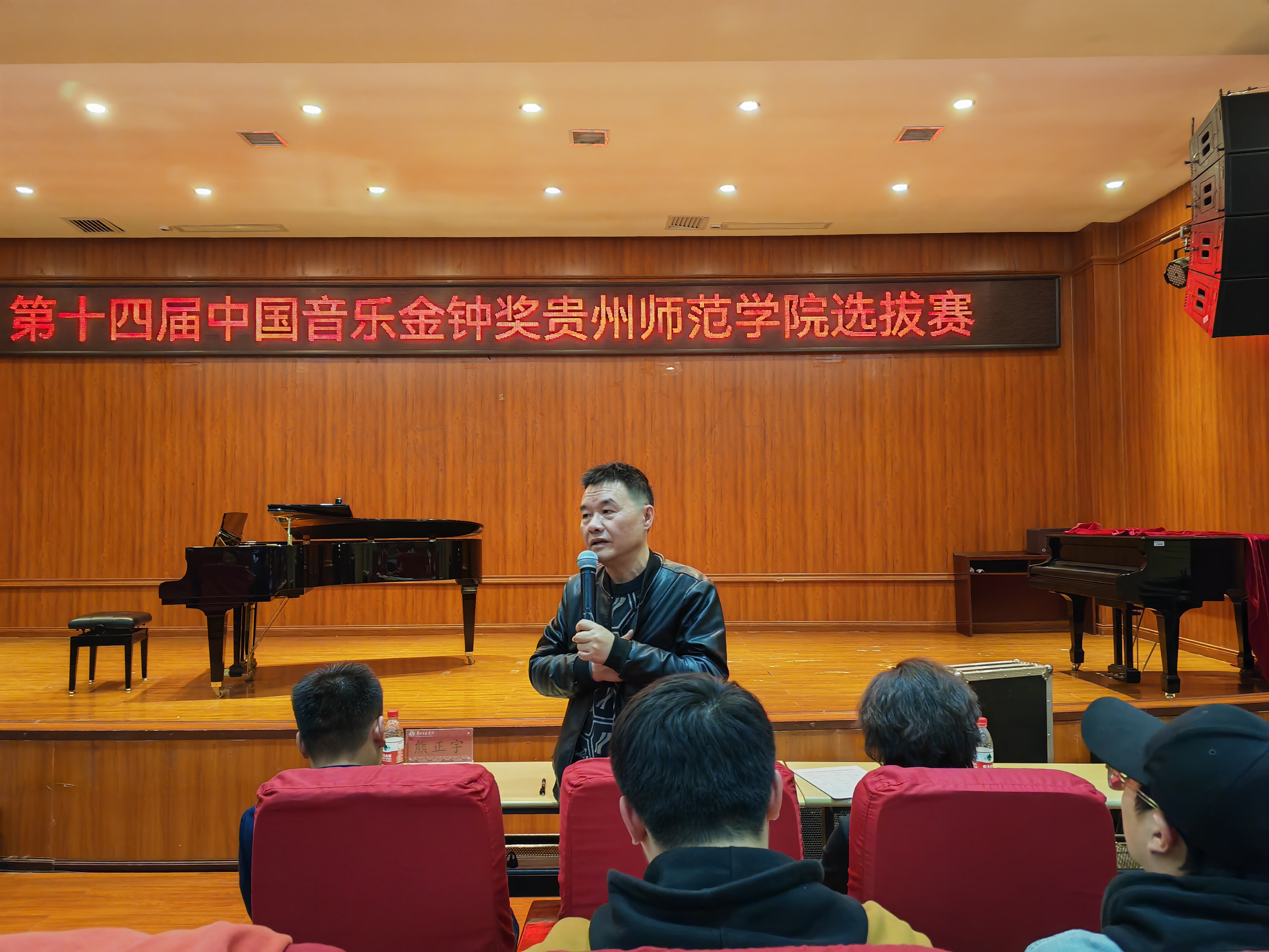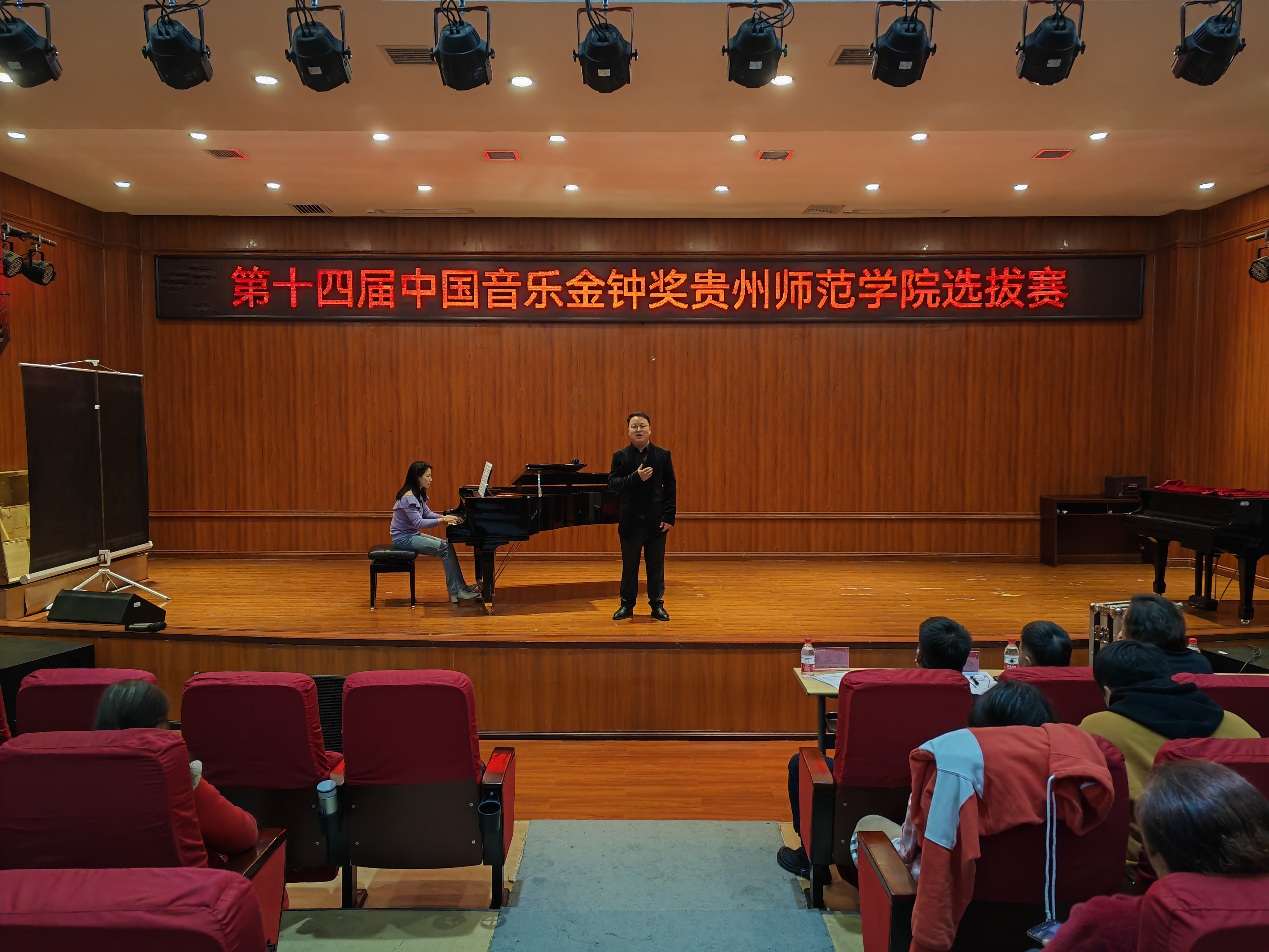 为选拔和培养优秀声乐学生角逐中国音乐金钟奖贵州省选拔赛,4月6日下午,第十四届中国音乐金钟奖永利集团选拔赛在77779193永利官网集团六楼表演厅举行。为准确选拔出省赛参赛选手,学院特邀贵州省音乐家协会副主席黄承志、贵州省歌舞团歌剧团团长熊正宇、贵州师范大学音乐学院硕士研究生导师陈昕担任评委。