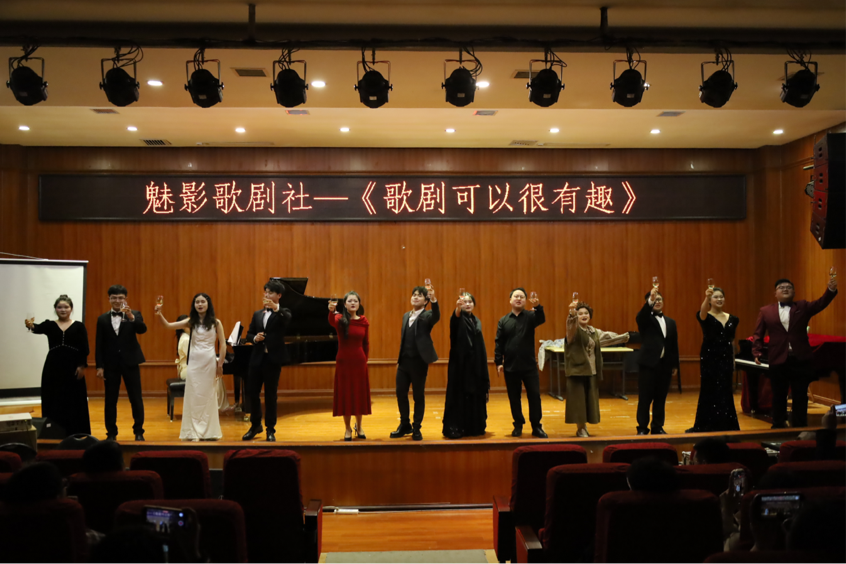 魅影歌剧社全体同学们深化作品赏析,认真解读每部歌剧的音乐故事和文化内涵,创新表演形式,通过刻苦的排练,完美演绎了《费加罗的婚礼》《弄臣》《波西米亚人》等著名歌剧经典片段,获得师生一致好评。