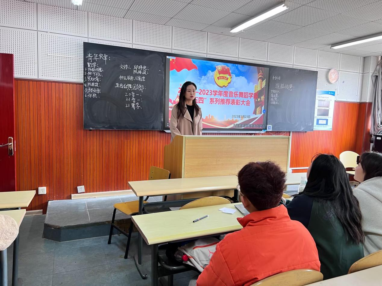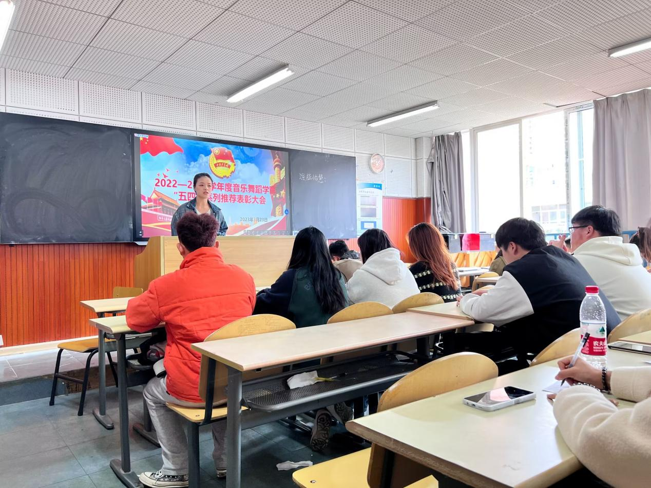 最后,舒然发表总结讲话,她在五四青年节即将到来之际,勉励在场的全体音舞青年、团员、团干们,要高擎“五四”火炬,赓续五四精神,牢记习近平总书记对青年的殷切期望,努力掌握科学文化知识和专业技能知识,奋力提高自我的人文素养和综合能力,珍惜光阴、不负韶华,勤于学习、敏于求知,沿着求真理、悟道理、明事理的方向前进,让青春在为祖国、为人民、为民族、为人类进步事业的奉献中焕发出更加绚丽的光彩。