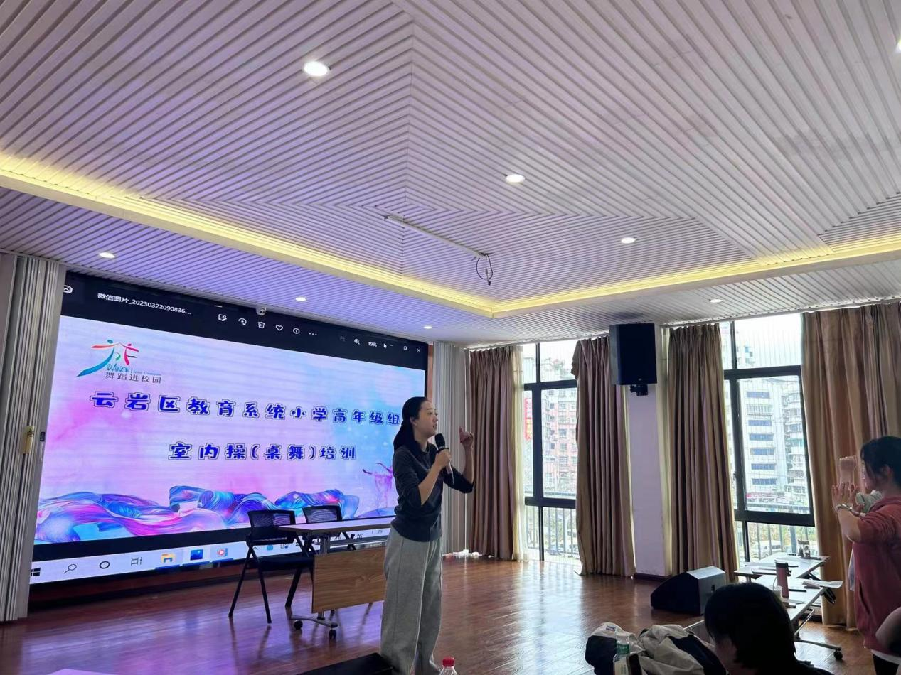 2023年3月22日至23日,我院舞蹈系受到了云岩区教育局的邀请,为全区50多所学校的老师们进行了室内操的培训,全区50多所小学体育老师(每校1-2名体育老师)参与此次培训。