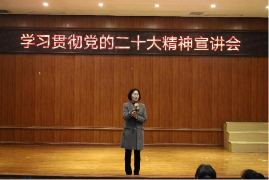 付巧围绕“三个务必”、十年来的三件大事、中国共产党的中心任务、牢牢把握“五个重大原则”等方面,阐释了党的二十大报告主要内容。她表示党的二十大报告对教育、科技、人才工作的战略部署,对学院在新时代新征程的使命任务,对学院全面学习、全面把握、全面落实党的二十大精神、落实立德树人根本任务、培养社会主义建设者和接班人等工作提出相关要求。