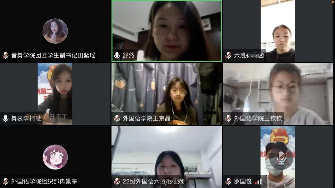 舒然以“同心同力学党史,同向同行践使命”为主题,以“奋斗”为主线,带领全体学员在云端以观看、解读音乐舞蹈史诗《奋斗吧,中华儿女》的方式,“艺术化”地呈现了一代又一代中华儿女为民族独立、国家富强不懈奋斗的伟大历程。她强调,团员青年要学史明理、学史增信、学史崇德、学史力行,从百年党史中汲取智慧和力量,将一代代中国共产党人用生命熔铸信仰写就的不朽史诗内化为理想信念和品德修为,转化为学习动力和爱国行动。