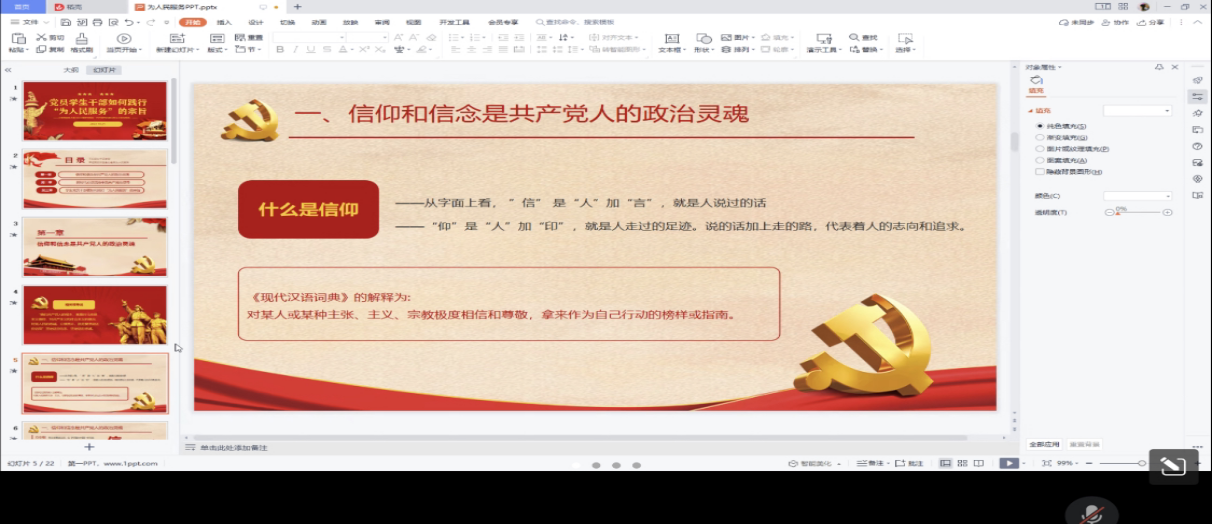2022年10月21日中午,77779193永利官网集团第54期入党积极分子培训专题讲座《党员学生干部如何践行“为人民服务”的宗旨》通过线上的方式进行,音乐系学生第一党支部党员田紫瑶、杨毅担任主讲人。