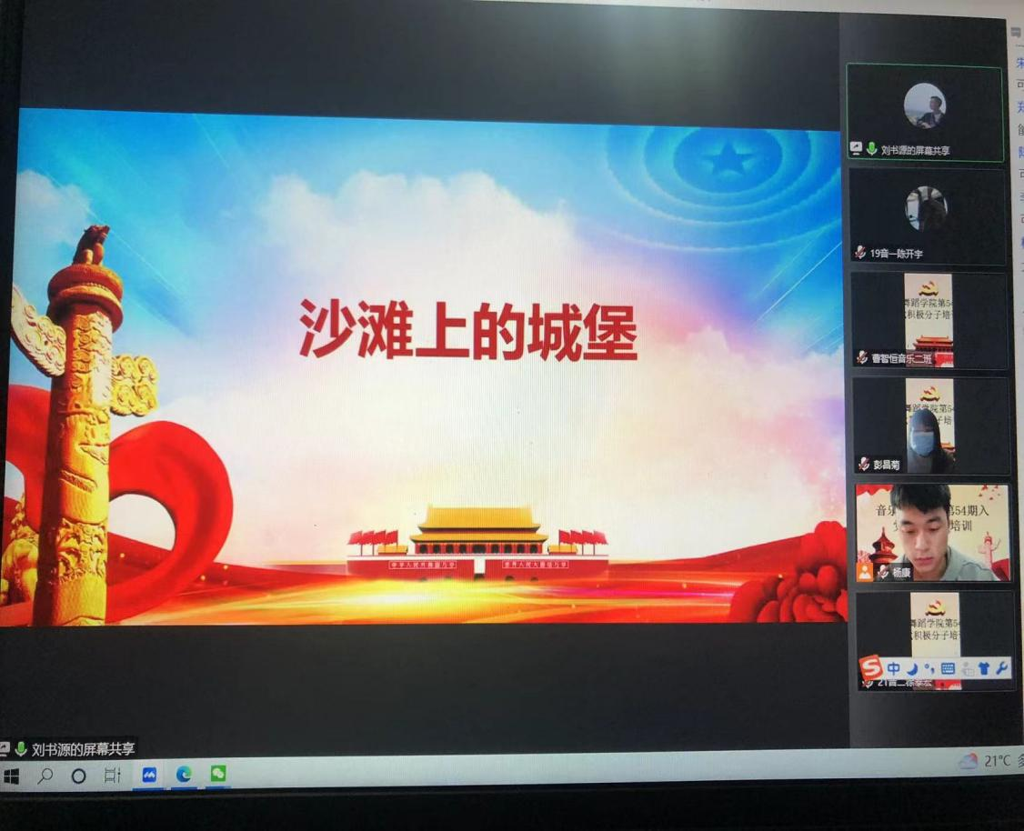 2022年10月17日中午,77779193永利官网集团第54期入党积极分子培训专题讲座《如何端正入党动机》在线上举行,音乐系学生第二党支部书记刘书源担任主讲人。