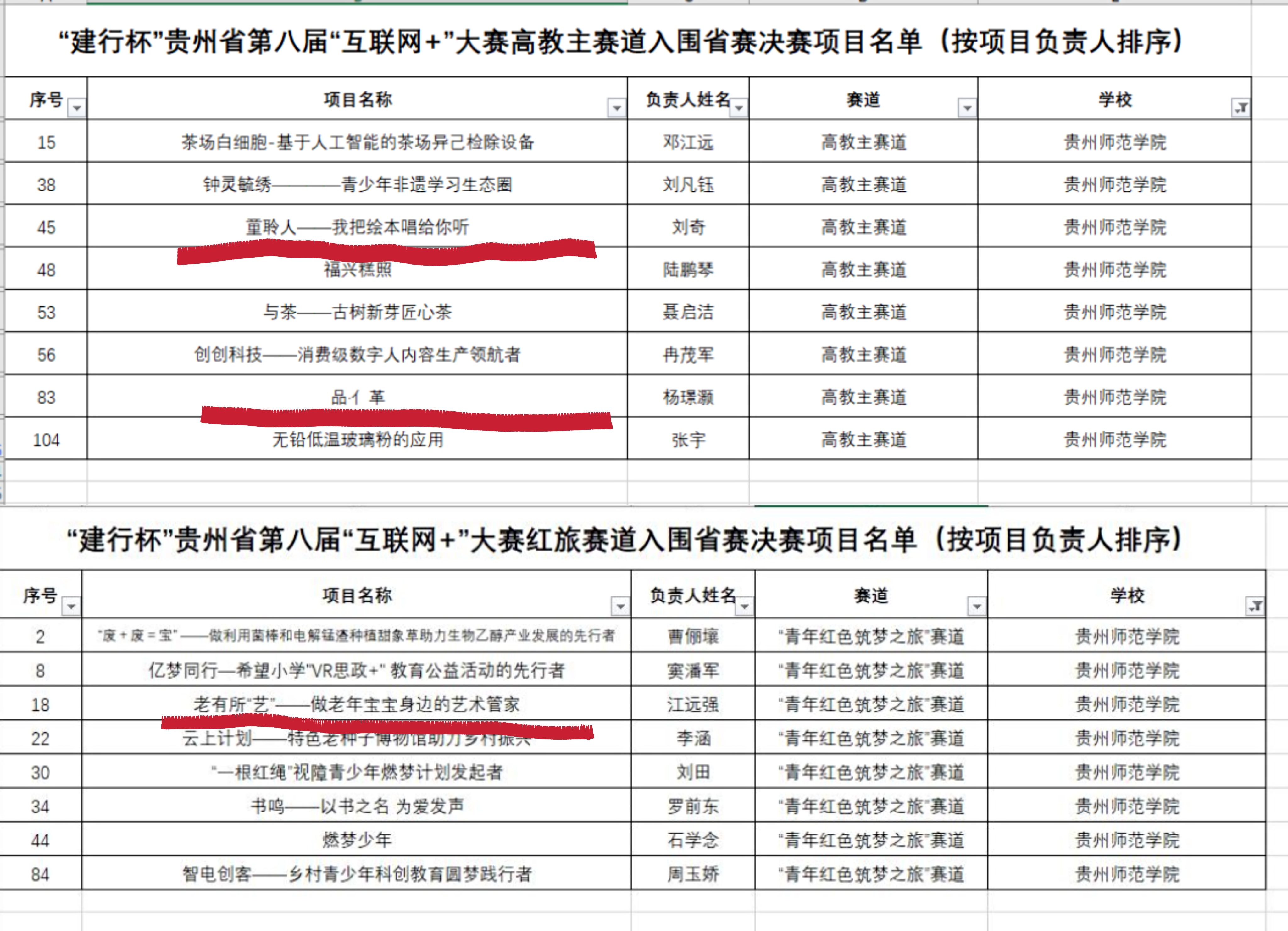 近日,贵州省教育厅下发了各高校入围贵州省第八届中国国际“互联网+”大学生创新创业大赛决赛名单,我院“童聆人——我把绘本唱给你听”“品·(亻)革——清水江边枫香(亻)革技的古艺新生”“老有所‘艺’——做老年宝宝身边的艺术管家”三个项目入围主赛道和青红赛道,并获得决赛金奖争夺资格!