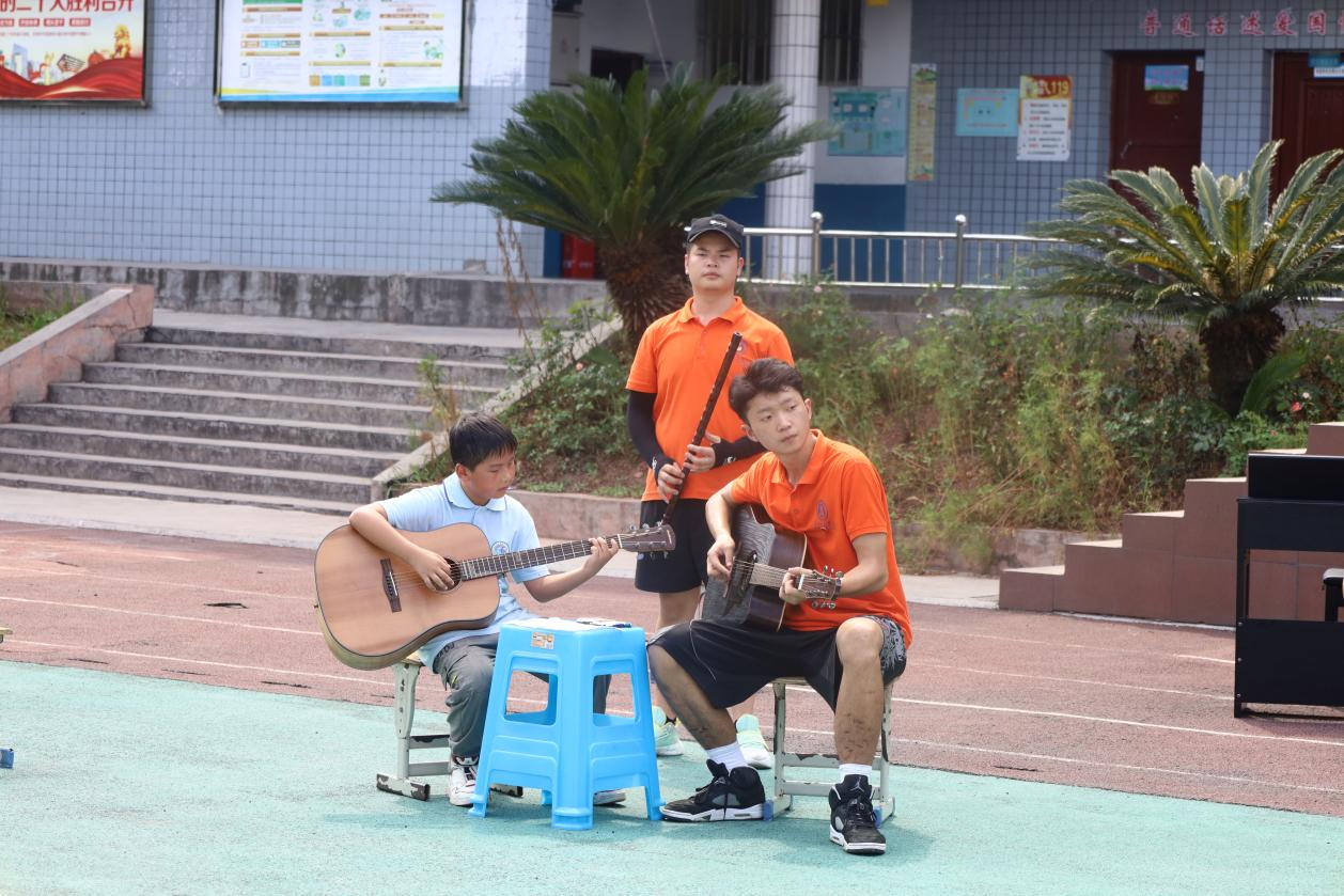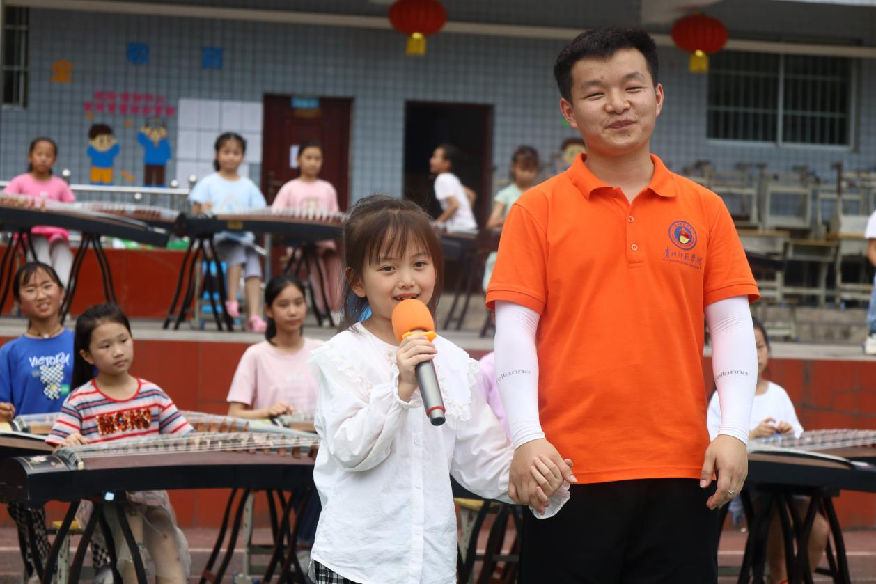 团中央“七彩假期”志愿服务示范团队、永利集团党史学习教育国家级团队“炫美阳光”结对帮扶习水县二郎镇中心小学开展暑期“三下乡”活动已渐入尾声,凝聚师生心血、呈现教学成果的汇报演出指日可待。7月24日的实践活动中,晚会节目联排紧锣密鼓的进行着,炎炎夏日,骄阳似火,椅席炙手,但全体演职人员均全情投入、心无旁贷的重复着一个又一个动作、一遍又一遍表演,无一人抱怨、无一人退缩。当被问到最大的收获时,参与演出的二郎镇小学生们积极举手,踊跃发言。童声合唱《萱草花》节目的领唱钟语晨说:“我第一次知道唱歌的专业名词叫声乐,声乐并不是简单的‘想唱就唱’,田玉婷姐姐教会了我科学的发声方法,还叮嘱我保护声带、合理用嗓。”民乐合奏《映山红》节目的丁欣悦说:“我第一次见到那么多的乐器同时出现在教室,也是第一次接触琵琶,我很喜欢‘她’的声音,抱上琵琶的那一刻我感到自己是最自信的!”少儿古典舞蹈《杏花雨纷纷》节目的王瑞卿说:“原来舞蹈还分古典舞、现代舞和民族舞,将来有机会我要全部学会,成为一名全能舞者!”