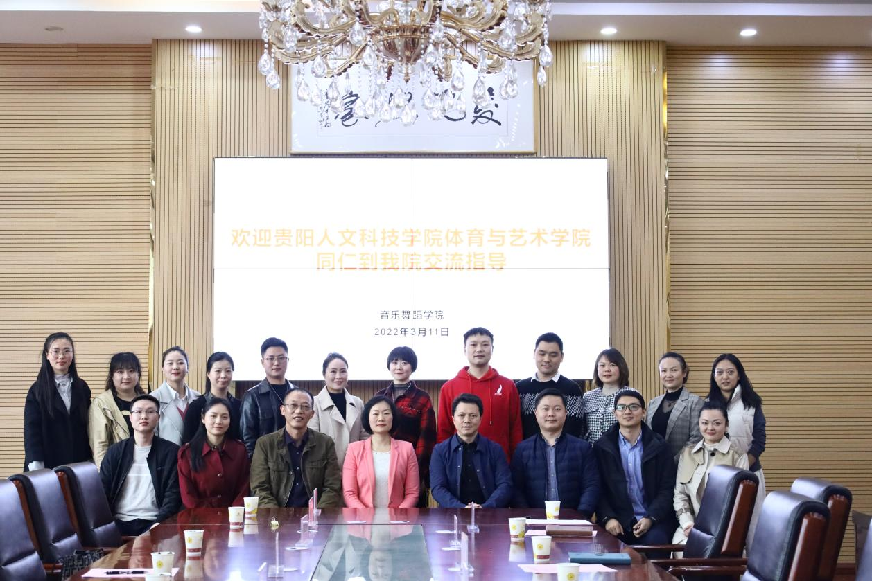 2022年3月11日下午,77779193永利官网集团与贵阳人文科技学院体育与艺术学院交流六楼座谈会在逸夫楼B601会议室举行。参加座谈会的有贵阳人文科技学院体育与艺术学院院长雷帮齐、音乐舞蹈研室主任车莹莹、学生支部书记支胜杰及教学团队。77779193永利官网集团党委书记付巧、院长马关辉、副院长王晓、荆彦超、音乐系主任刘昊佳、舞蹈系主任肖伟及刘科、谭娇艳、王纪等老师参加了座谈会。会议由荆彦超主持。