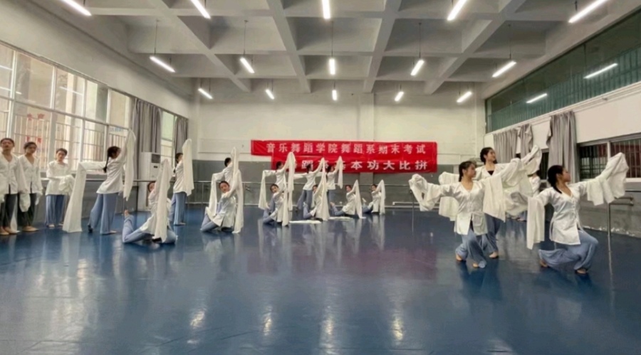 为考察舞蹈系本学期教学质量及完成情况,12月22日—12月24日,舞蹈系2021—2022学期期末考试在逸夫楼005练功厅举行,舞蹈系全体学生参加本次考试,舞蹈系所有老师担任考官。