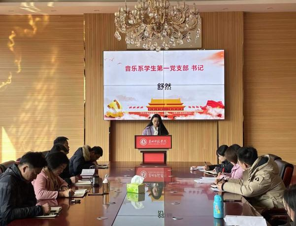 会上,按照要求,舞蹈系学生党支部书记李金容、音乐系学生第二党支部书记刘书源、音乐系学生第一党支部书记舒然、教师党支部书记谭娇艳依次进行现场述职汇报。各党支部书记围绕深入开展落实党史学习教育和“牢记殷切嘱托、忠诚干净担当、喜迎建党百年”专题教育工作情况,加强党的思想建设、组织建设、作风建设、纪律建设、标准化规范化建设等方面,结合党支部实际,汇报了各自一年来履职尽责情况、党支部特色工作、党支部建设存在的问题及下一步工作思路、改进措施等。