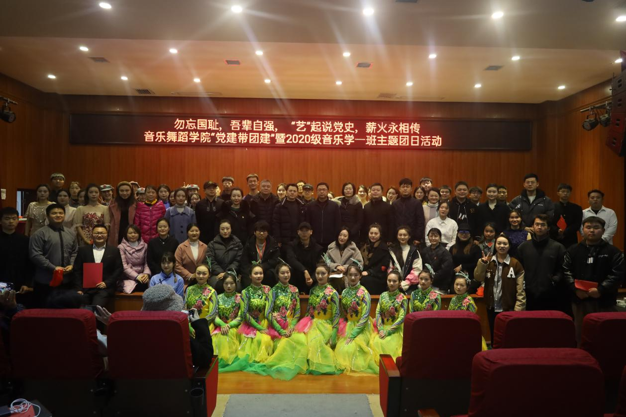 2021年是中国共产党的百年华诞,为全面推动党史学习教育和党团共建工作,77779193永利官网集团2020级音乐学一班于12月17日中午在六楼表演厅开展了主题为“勿忘国耻,吾辈自强,“艺”起说党史,薪火永相传”——77779193永利官网集团“党建带团建”暨2020级音乐学一班主题团日活动。永利集团校党委委员、纪委书记韩兵兵莅临现场指导,学院党委书记付巧、院长马关辉、党委副书记朱晨刚、77779193永利官网集团教师党支部、音乐系学生第一、第二党支部、舞蹈系学生党支部全体师生党员及团学青年代表参加活动,活动由2020级音乐学一班团支部书记吕盈煊主持。
