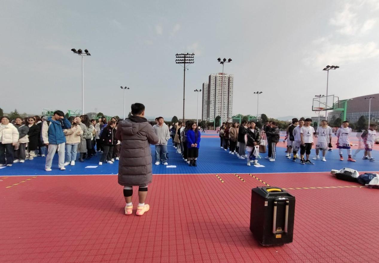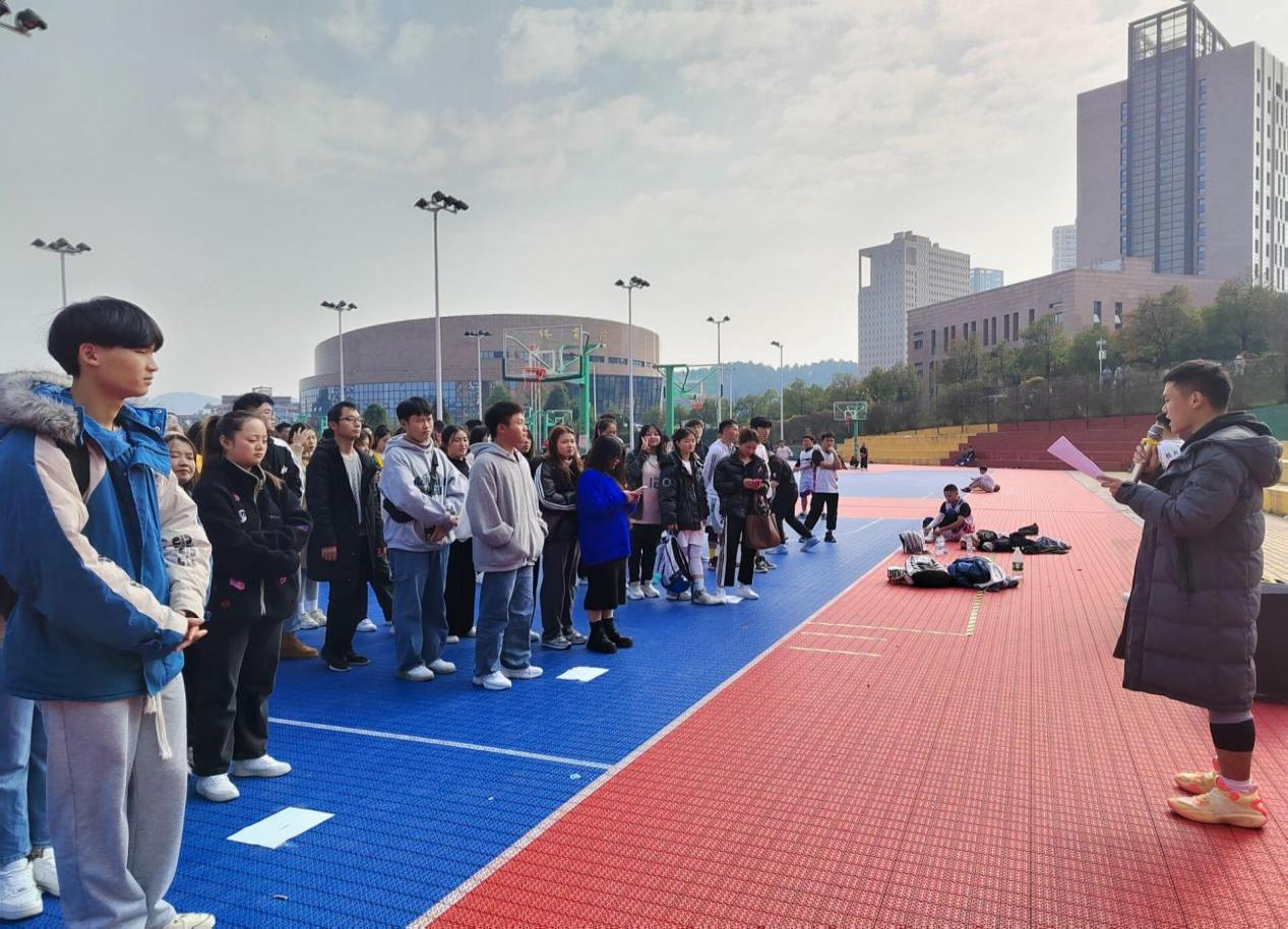 2021年12月4日14时,77779193永利官网集团团委组织团学青年在室外篮球场一号场地开展“传承红色精神,展现运动风采”纪念12•9活动暨首届篮球赛开幕式。参与此次活动的有团委学生副书记江远强、团委实践部部长关琪琛、全体球员及近百名志愿者,活动由关琪琛主持。