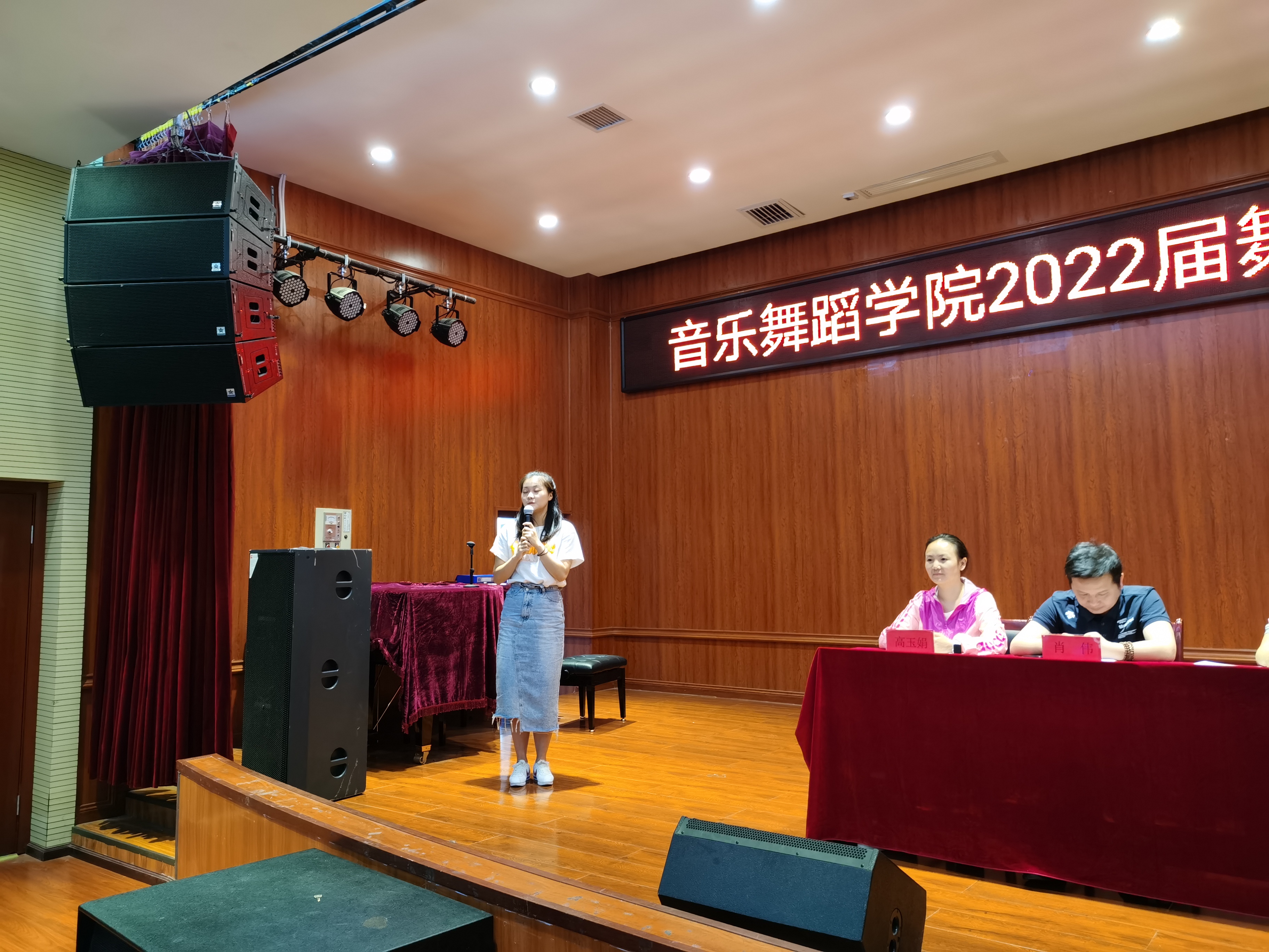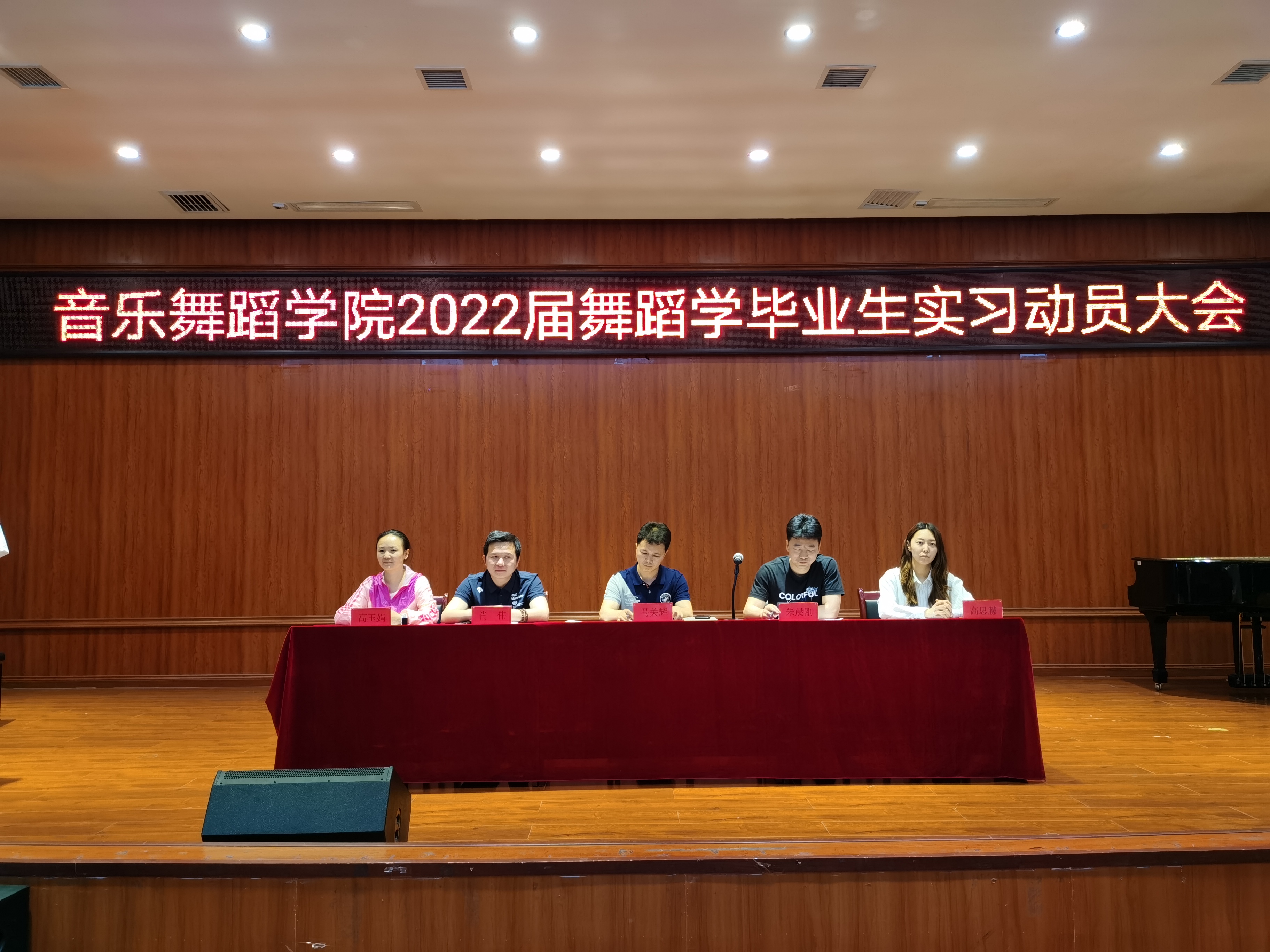 6月10日中午,77779193永利官网集团于逸夫楼六楼音乐厅召开2022届舞蹈学毕业生实习动员大会,参会人员有77779193永利官网集团院长马关辉、党委副书记朱晨刚、舞蹈系主任肖伟、副主任高玉娟、实习指导老师高思朦及2018级舞蹈学全体学生,本次会议由高玉娟主持。