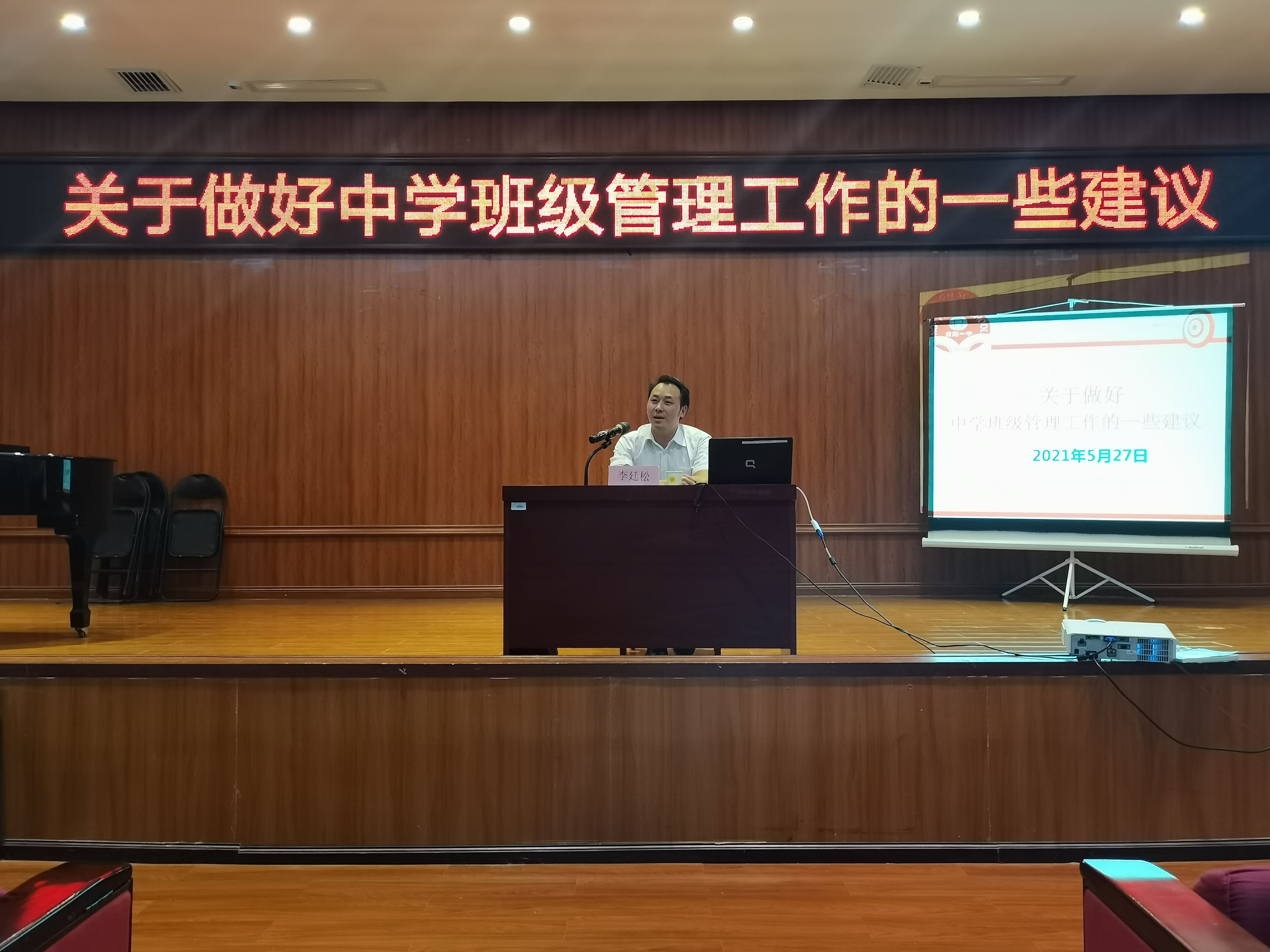 5月27日,贵阳市第一中学一级教师李廷松受邀来到我院为即将参加教育实习的2018级音乐学专业学生开展岗前培训专题讲座,本次讲座的主题是怎样做好中学班级管理工作。