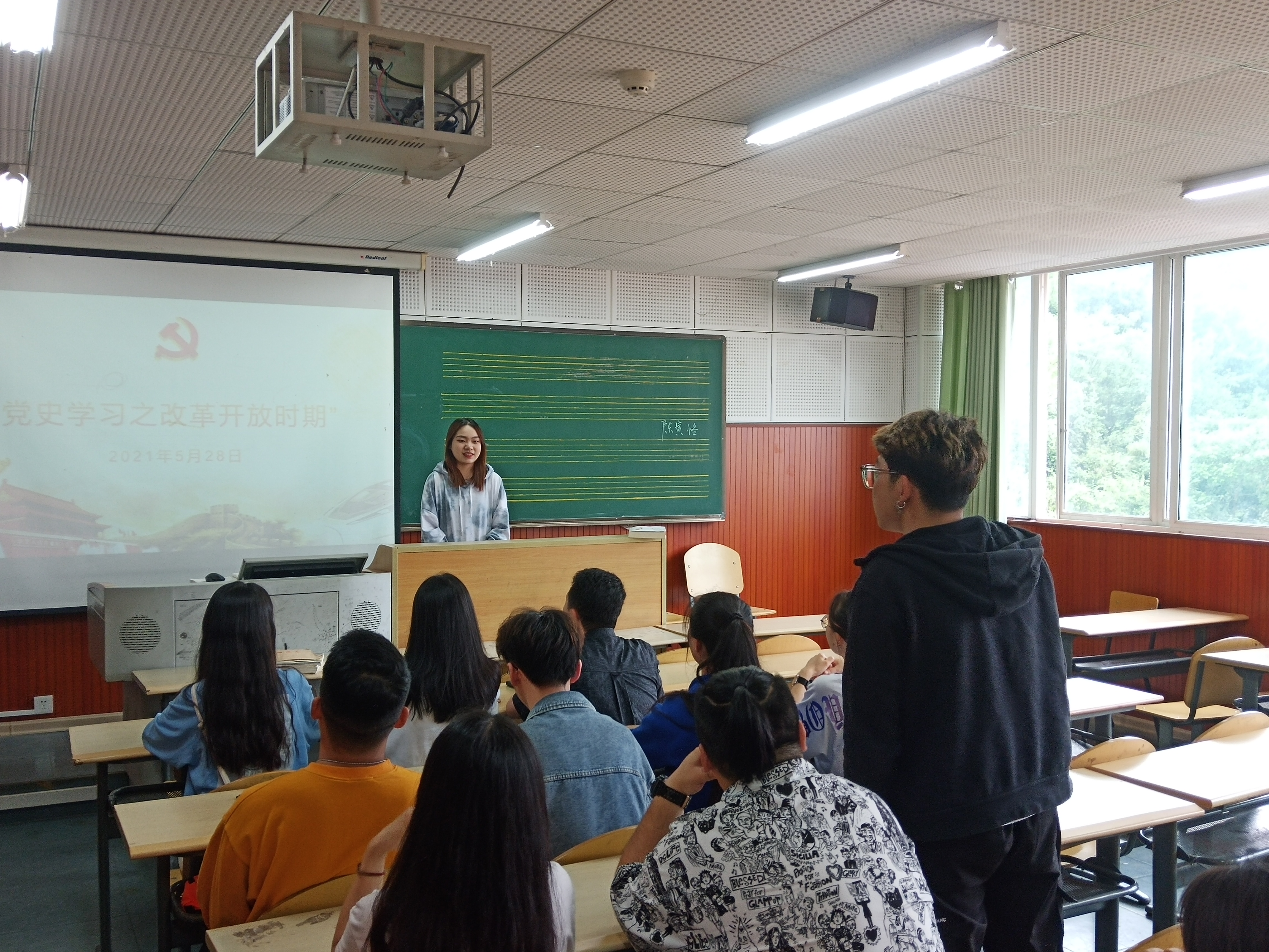 4月28日,77779193永利官网集团音乐系学生党支部在逸夫楼704教室开展集中专题学习活动,本次活动围绕改革开放时期进行集中学习,会议由柳芊璞主持。