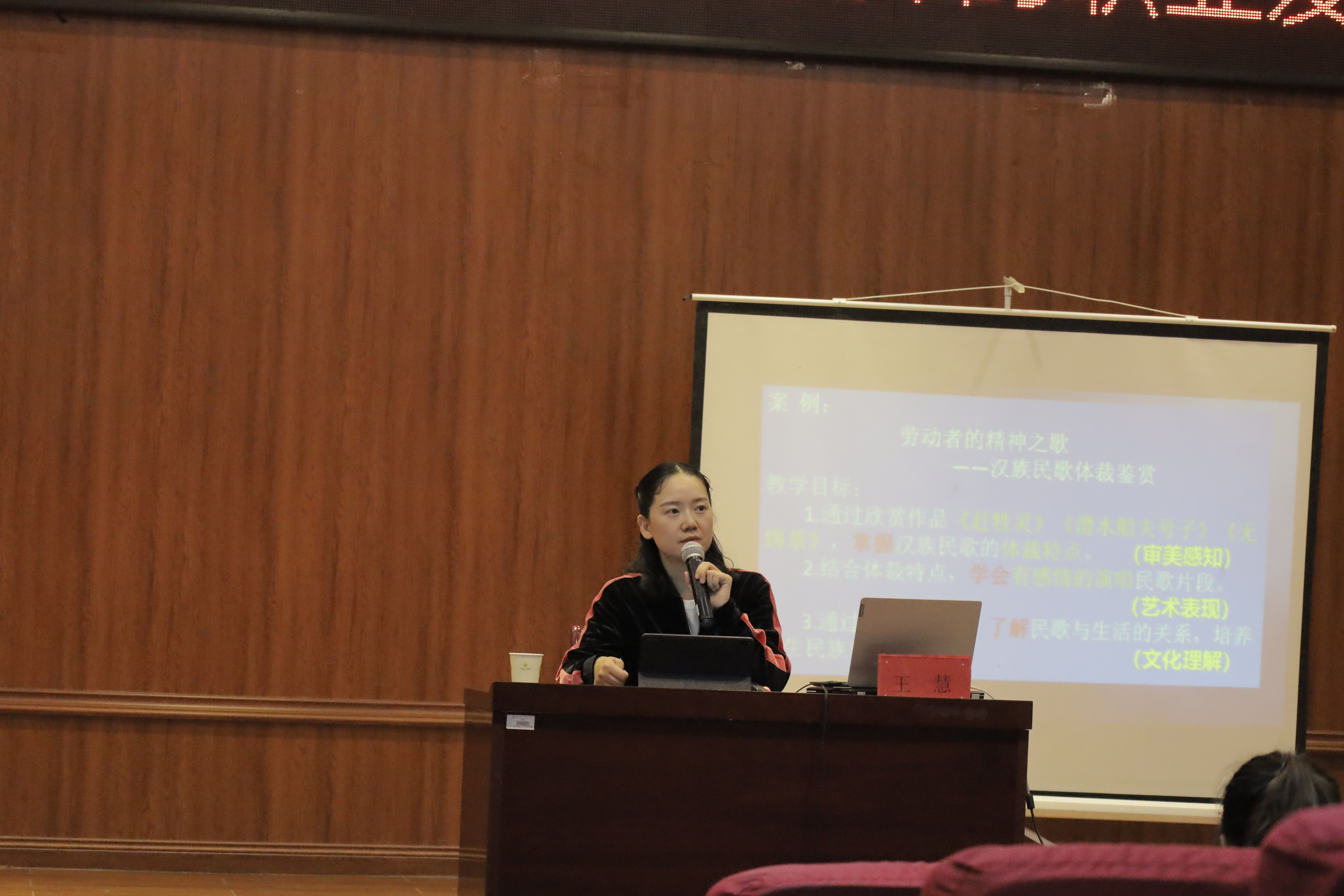 讲座开始,老师让学生观看视频“倾听现代高中生的心声”和“学生对你的更深层次的需求”,讲座分为两个板块,分别是“简约思维与高中音乐教学设计”和“简约思维在教学设计中的运用”。其中重点突出了“简约思维在教学设计中的运用”,并让同学上台模仿老师上课,带领同学们打拍子等等,让同学感受讲台的魅力。