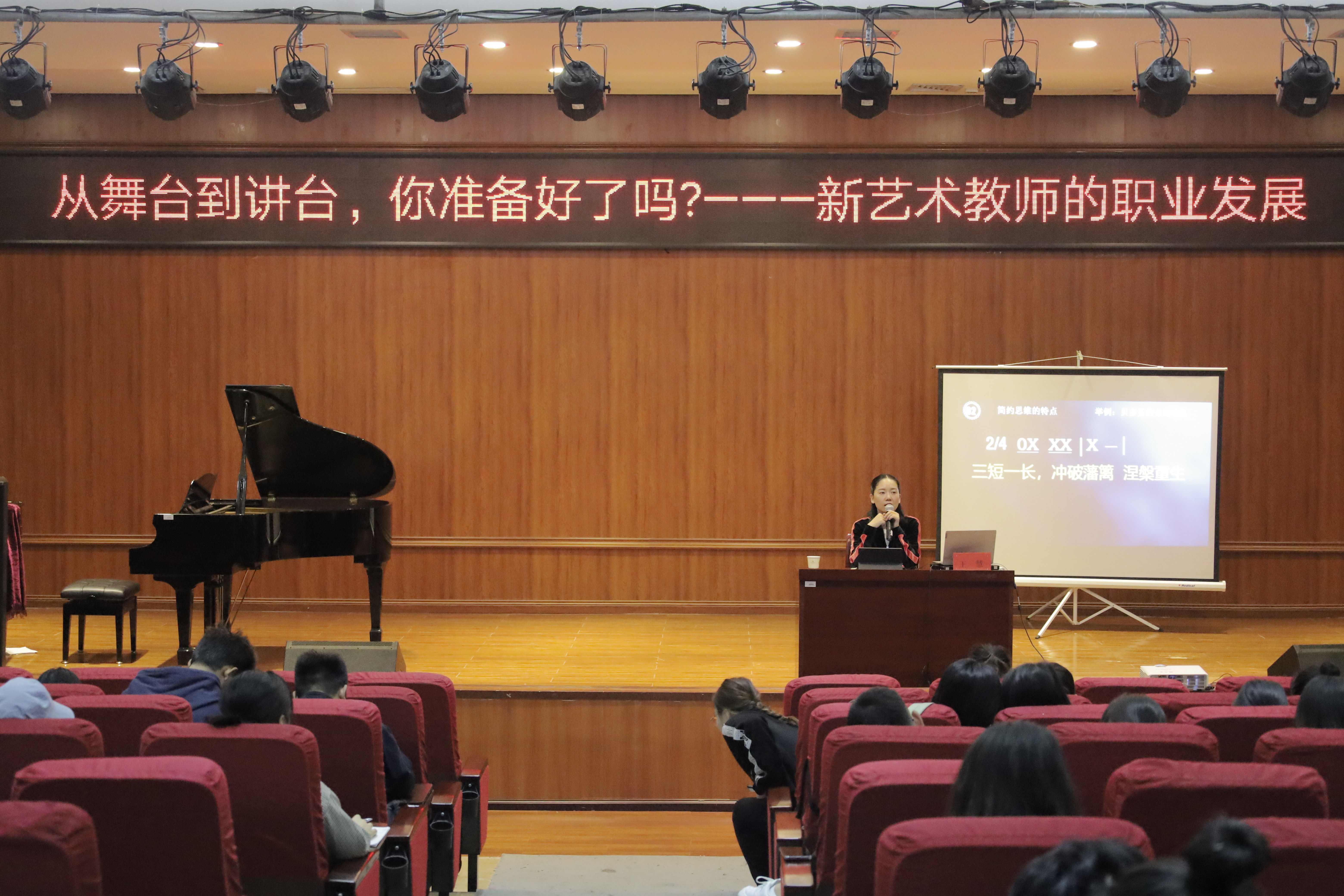 2021年6月4日,77779193永利官网集团在六楼演播厅开展“研习周”系列讲座,讲座的主讲人是“六中名师”王慧老师,讲座主题为“ 从舞台到讲台,你准备好了吗?——新艺术教师的职业发展 ”,参与人员的有18级,19级、20级全体音乐学学生。讲座由刘昊佳主持。