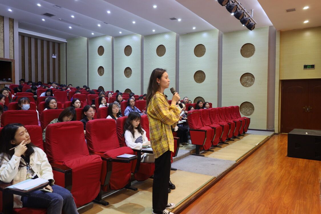 蒋鹤丹老师此次讲座的主要内容是体验式教学法,此次讲座她用四个要点来为同学们讲述:美育政策的解读、如何备课、如何上课及教学法理论来源。首先,蒋鹤丹老师为同学们讲述了美育政策近些年的发展变化,如中考需要考音乐学科知识等,体现出在学生的全面发展教育中美育的重要地位。蒋鹤丹老师为同学们着重讲述如何备课,上课,传授了一些有趣的上课小妙招给同学们,并带领大家感受了体验式教学法的课堂是如何开展的,老师通过与学生们互动的方式让同学们都能够参与到课堂学习中来,同学们为此都感悟颇深。最后,蒋鹤丹老师讲述了此次教学法理论的来源,为大家说明了缘由并答疑解惑。至此,本次讲座圆满结束。
