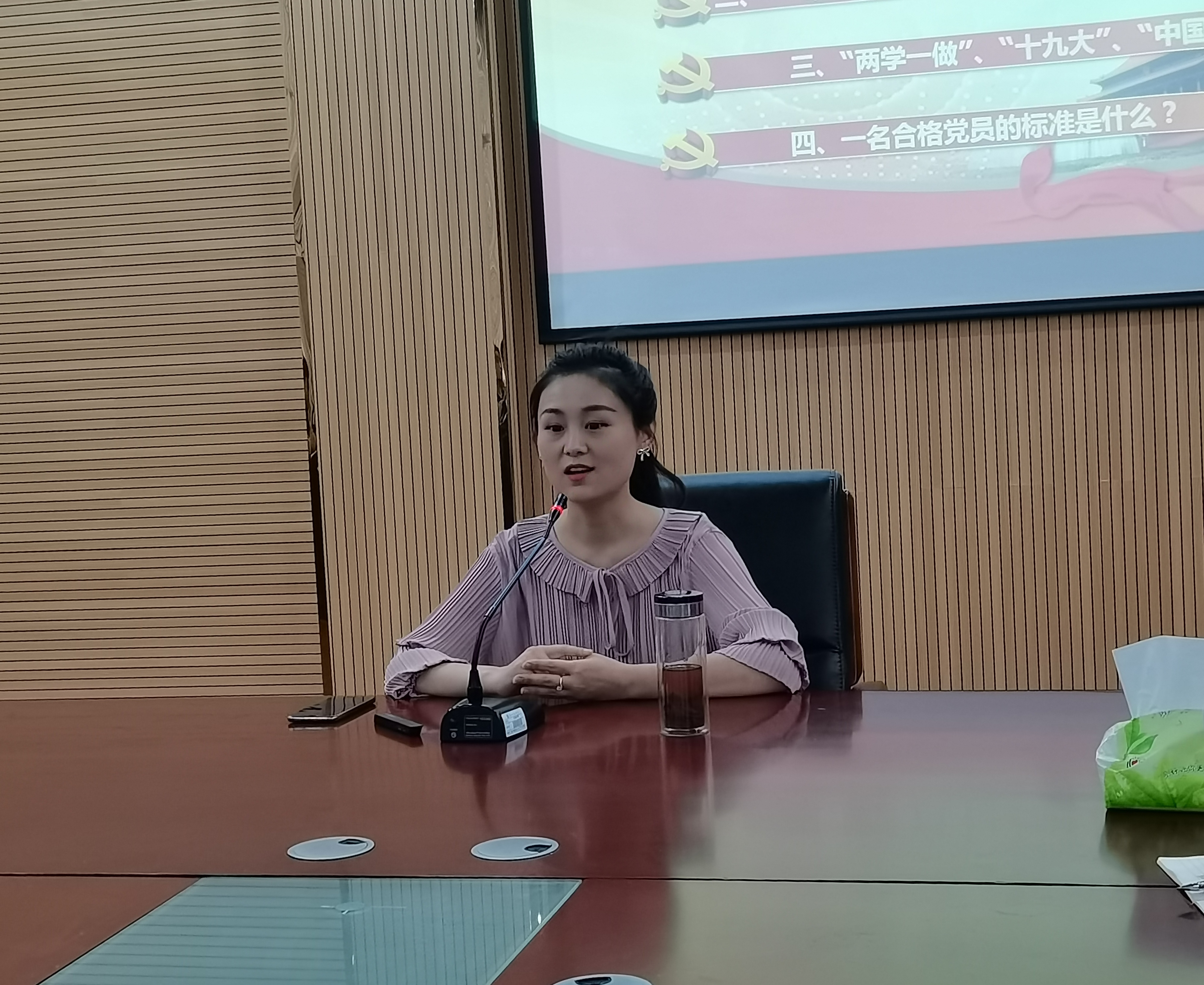 首先,舒然带领大家认识入党基本流程,阐明了做一名优秀大学生党员的重大意义。其次,以自己的身边经历为例和学员分享自己对于为什么要入党这一问题,强调了中国共产党的宗旨是:全心全意为人名服务以及端正入党动机的态度的重要性,深入阐述了新青年是这个时代无坚不摧的前进动力,作为入党积极分子要把正确的道德认知、自觉地道德养成,积极的道德实践紧密联合起来。最后,舒然对本次讲座进行总结,作为新时代的青年要热爱伟大的祖国,听党话、跟党走,爱国爱民之情,不断奉献祖国,奉献人民,用自己一生的真情投入到爱国。