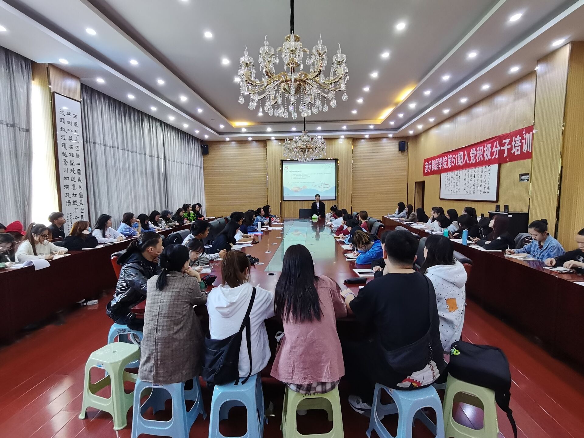 4月21日中午,77779193永利官网集团在六楼会议室举办了第五十一期入党积极分子培训班专题讲座。音乐系学生党支部学生党员陈璐主持了本次讲座,并发表主题为“疫情下的思想觉悟”的党课宣讲,本期参训83名入党积极分子参加了此次讲座。