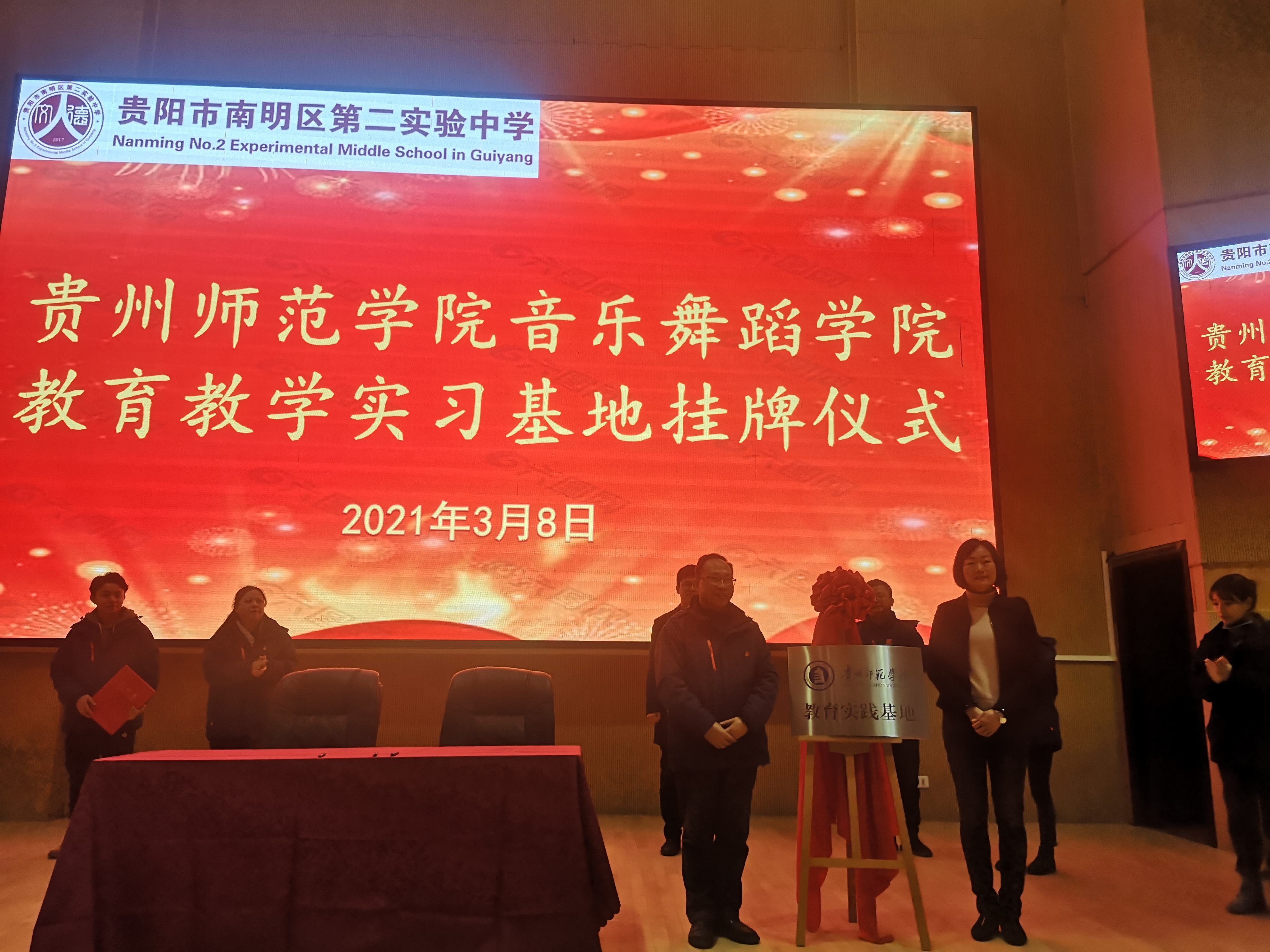 2021年3月8日,77779193永利官网集团党委书记付巧,实习办公室负责人王铎老师赴贵阳市南明区第二实验中学举行教育实践基地挂牌仪式,并洽谈了基地建设的详细规划。